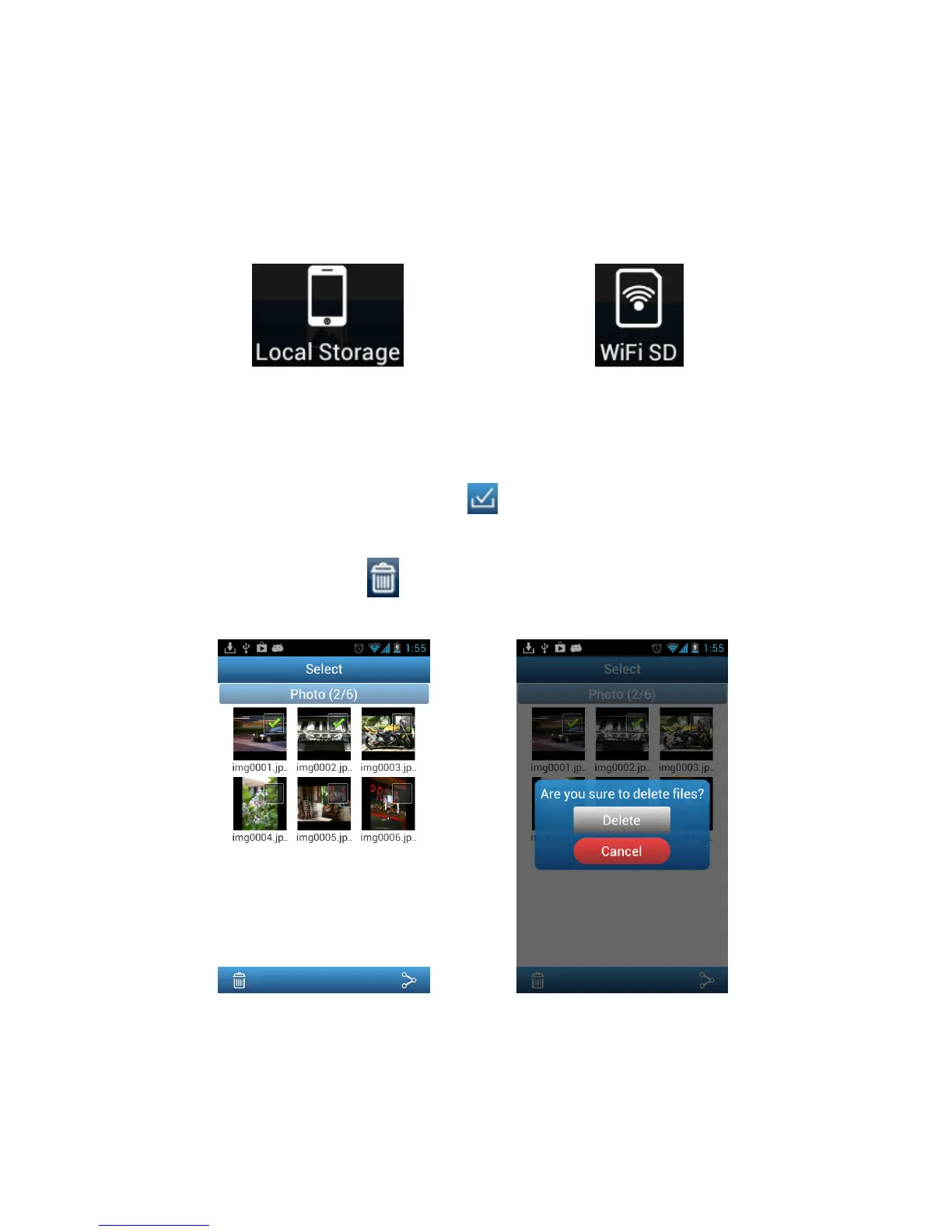 The Wi-Fi SD App allows you to delete files when in Local Mode.