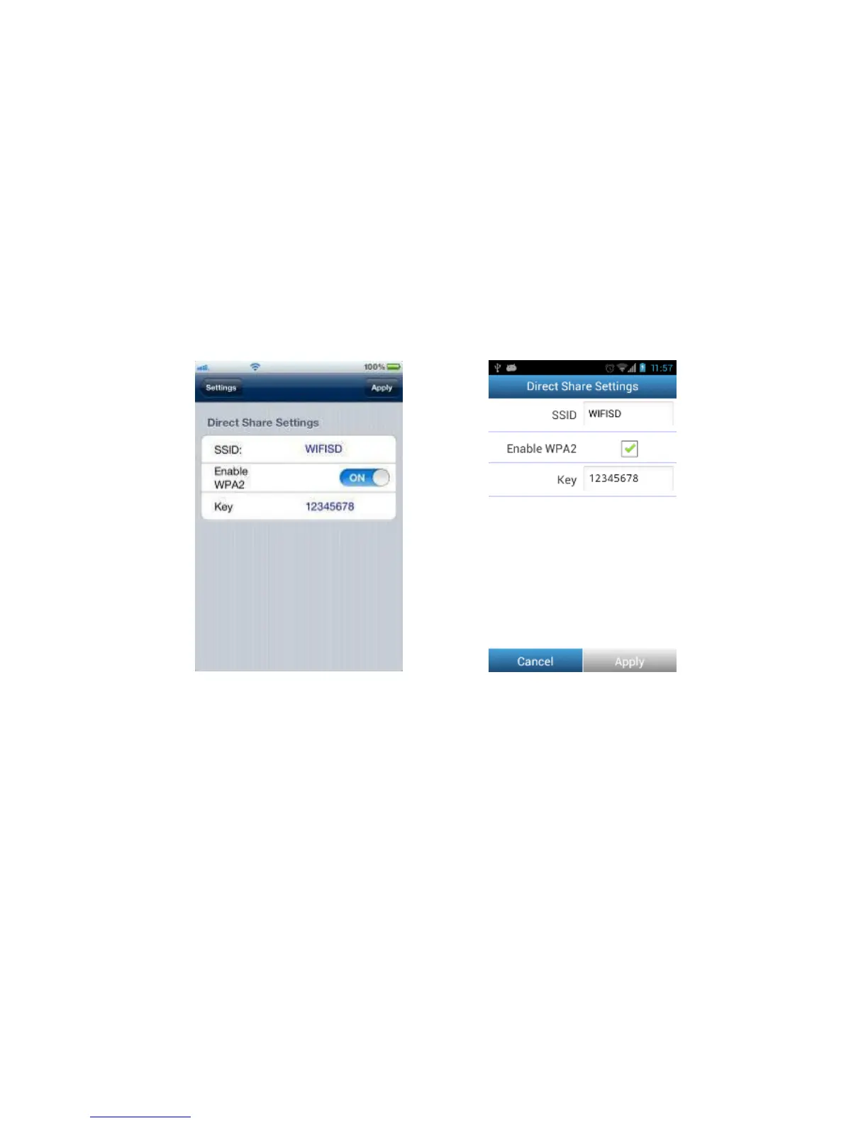 Direct Share settings on iOS device Direct Share settings on Android device