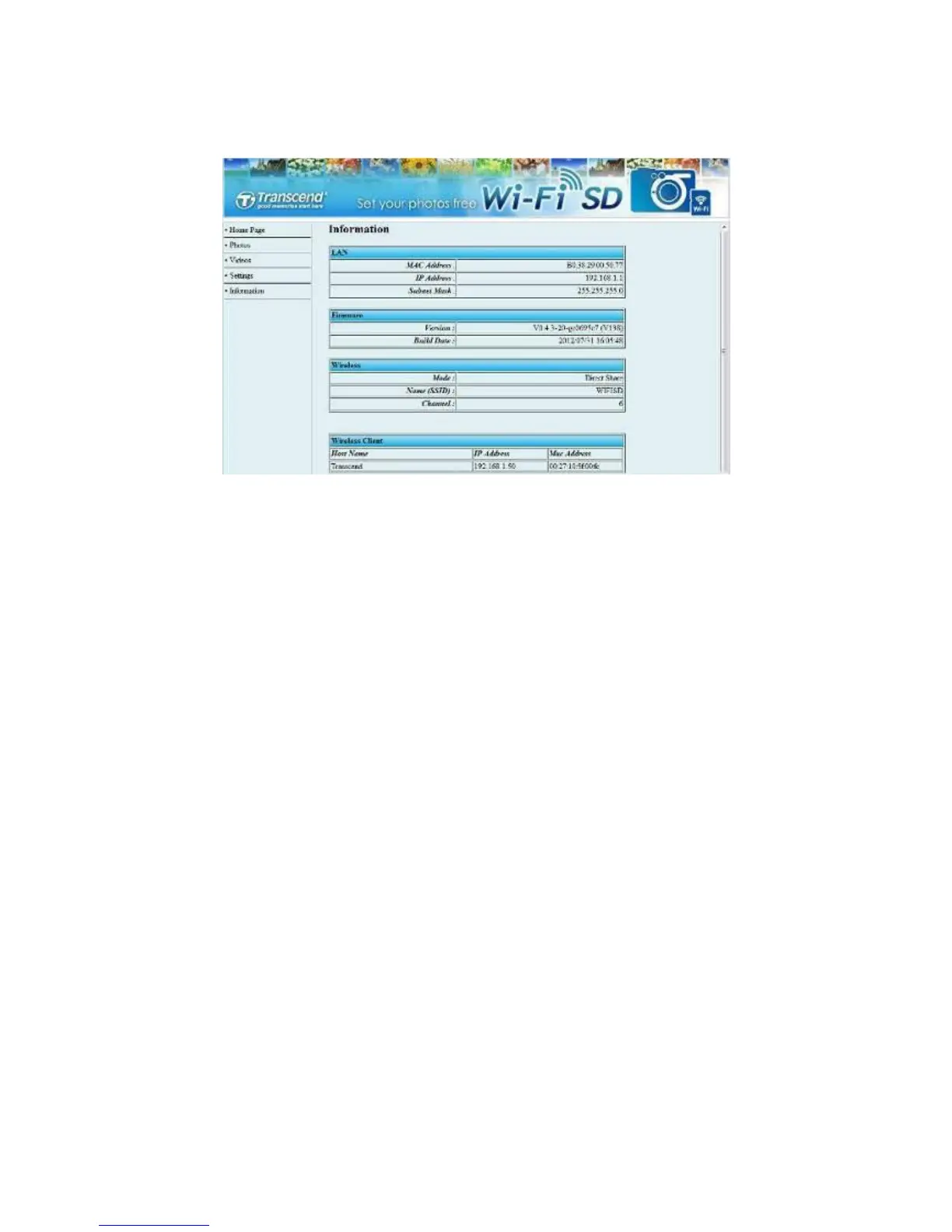 Wi-Fi SD Card Mode, SSID, and Channel.