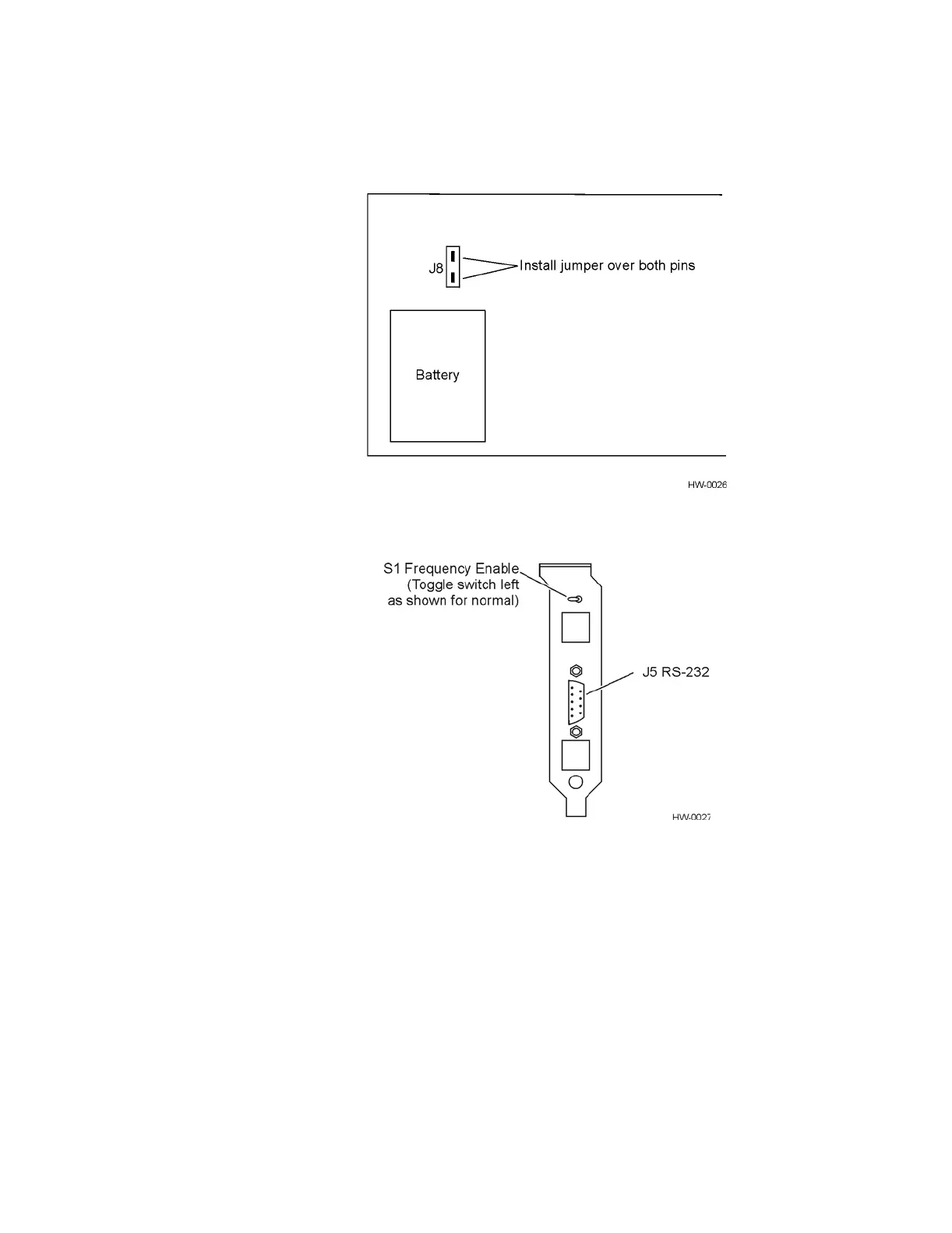 TransCore Amtech IT2200 - Figure 6-5 Location of Battery Jumper (J8) in Relation to Battery; Figure 6-6 Frequency Enable Switch on Rear of IT2020 Reader Logic Card