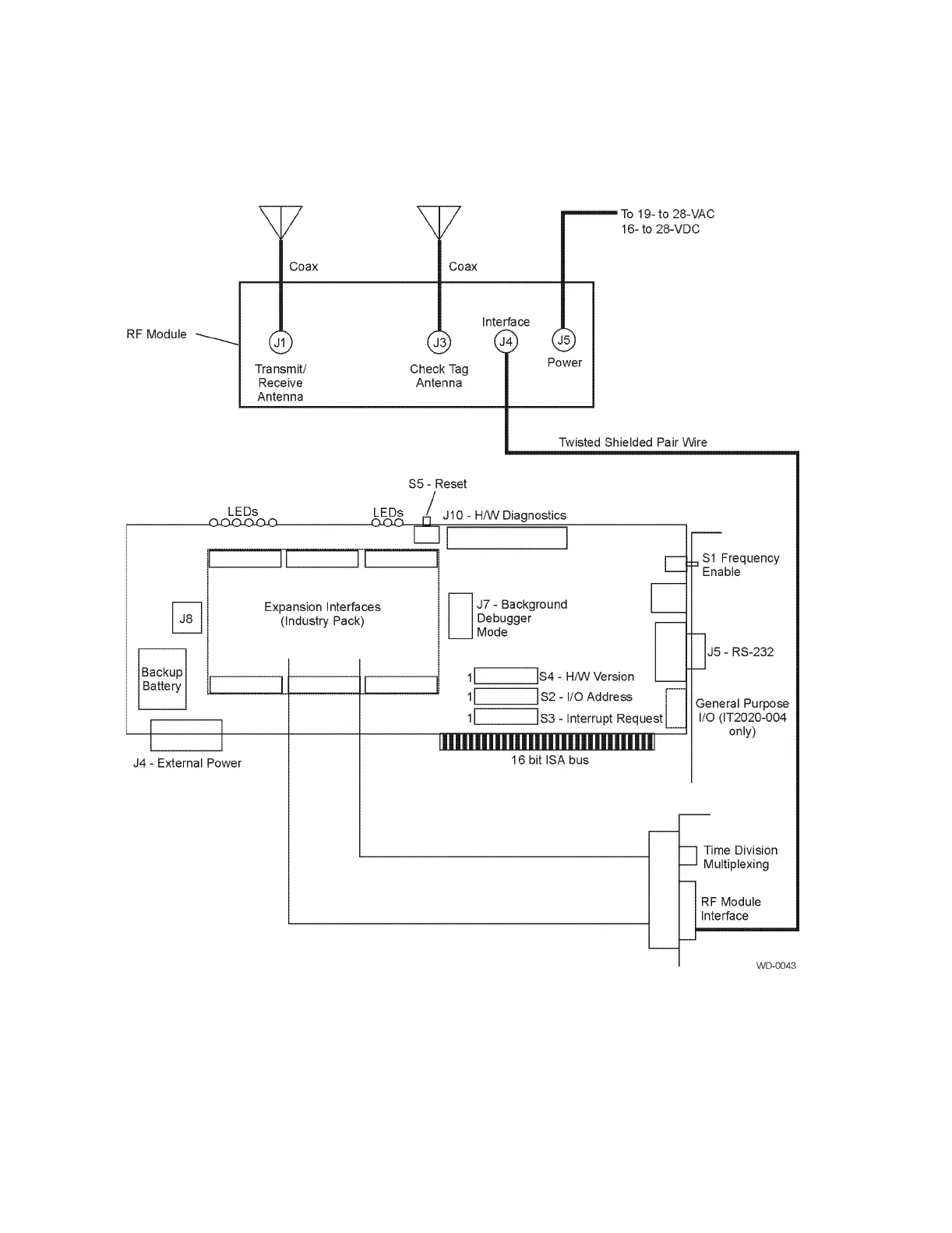 TransCore Amtech IT2200 - Figure B-6 Minimum Connections for the IT2020 Reader Logic Card Interface (Monostatic Application