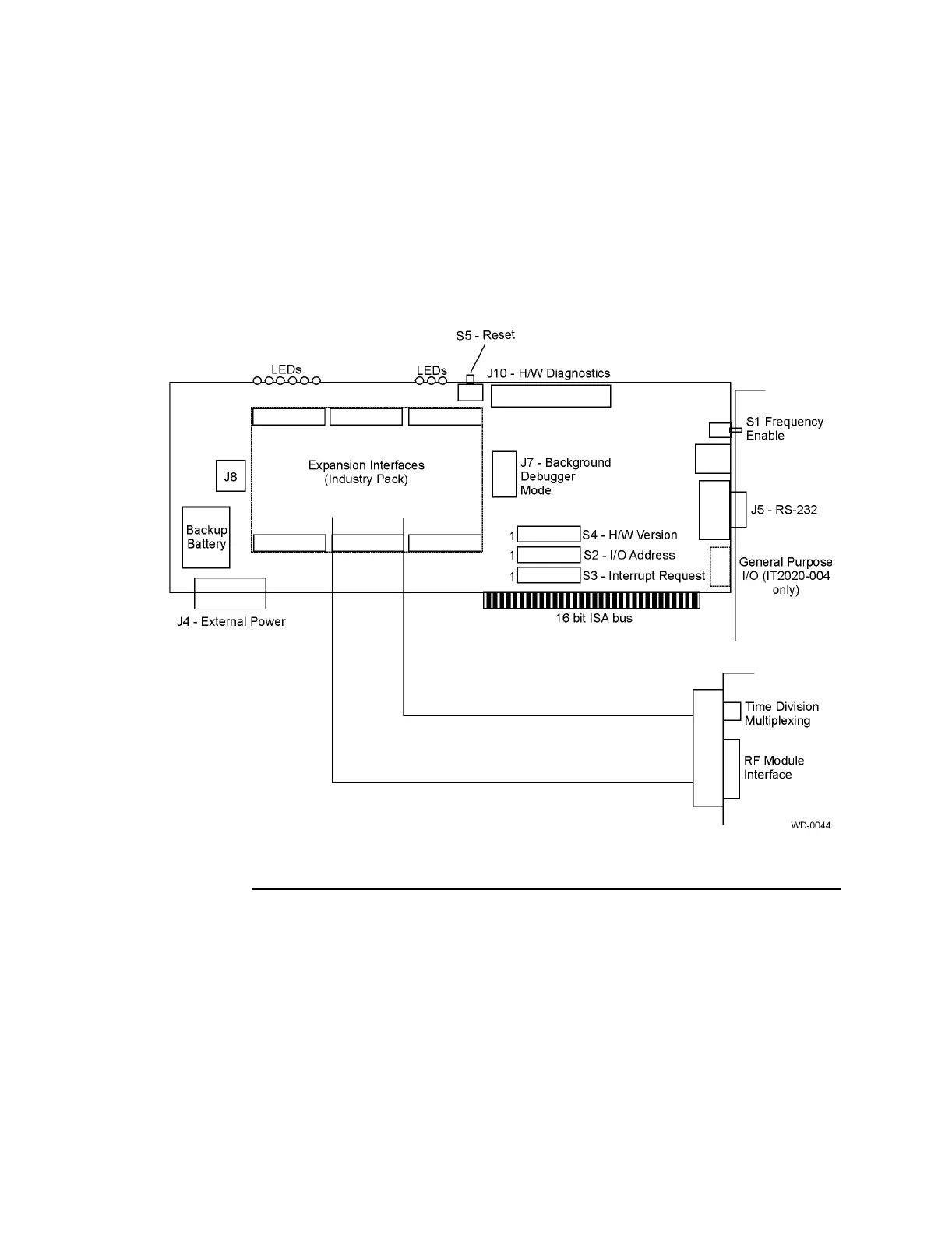 Figure D-1 shows the locations of the IT2020 Reader Logic Card switches.