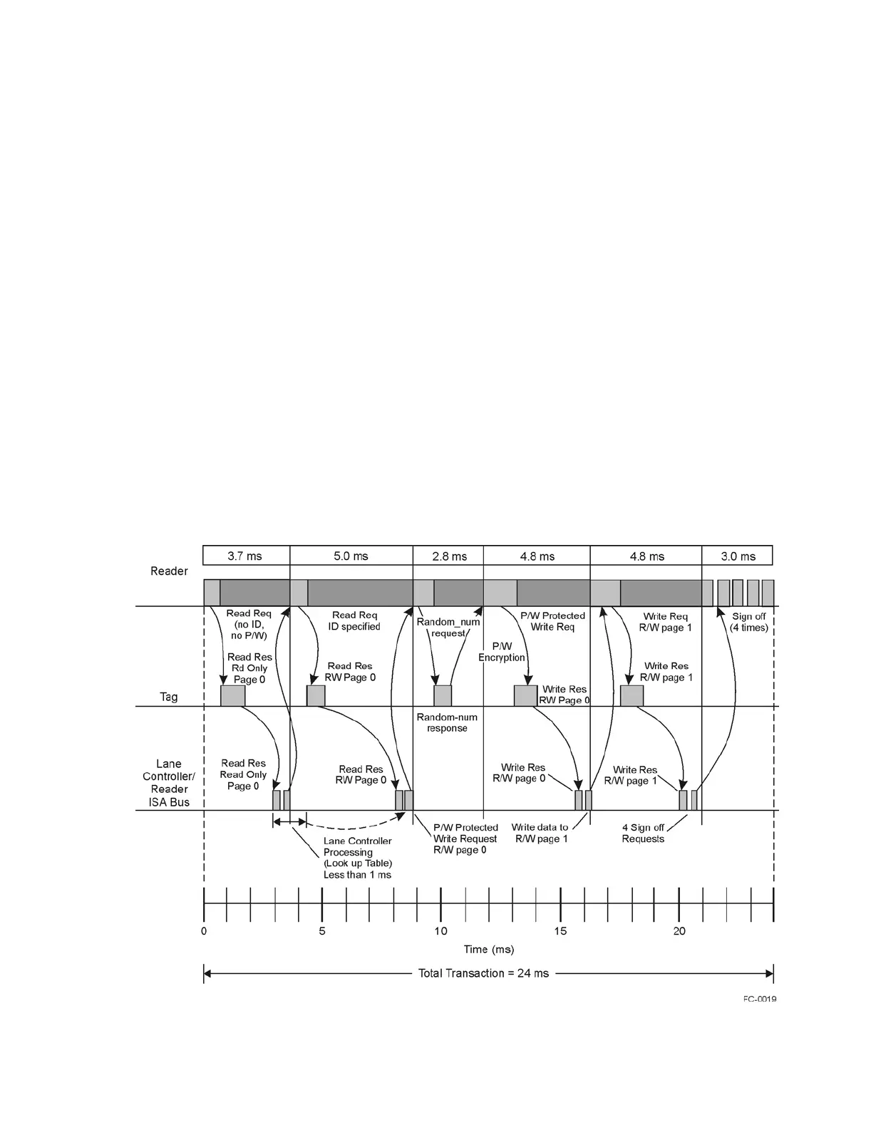The total transaction time for this RFID system is less than one-tenth of a second.