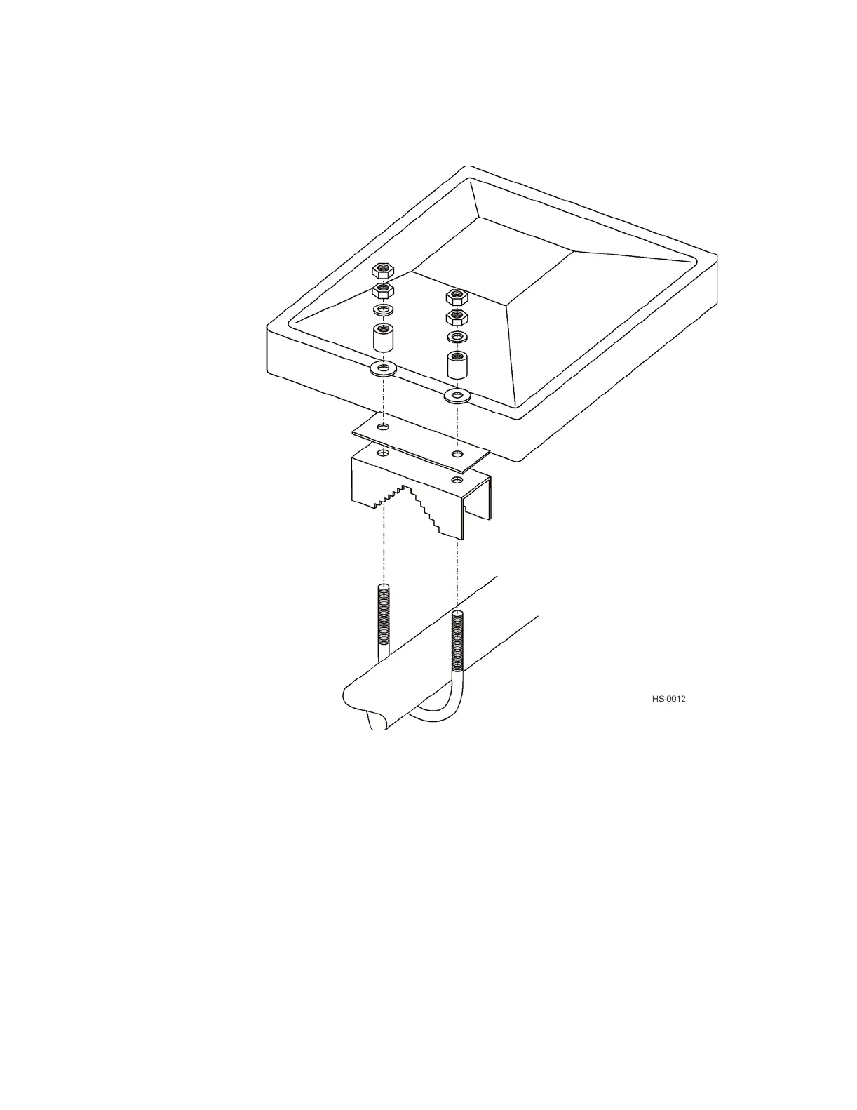and through the bracket. Place lock washer and nut over each side of U-bolt.