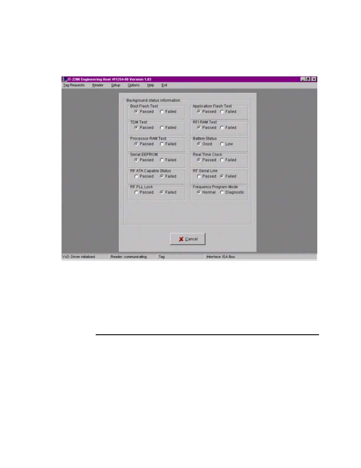 checked. Figure 5-1 shows a failure of the RF Data EEPROM, RF PLL Lock, and