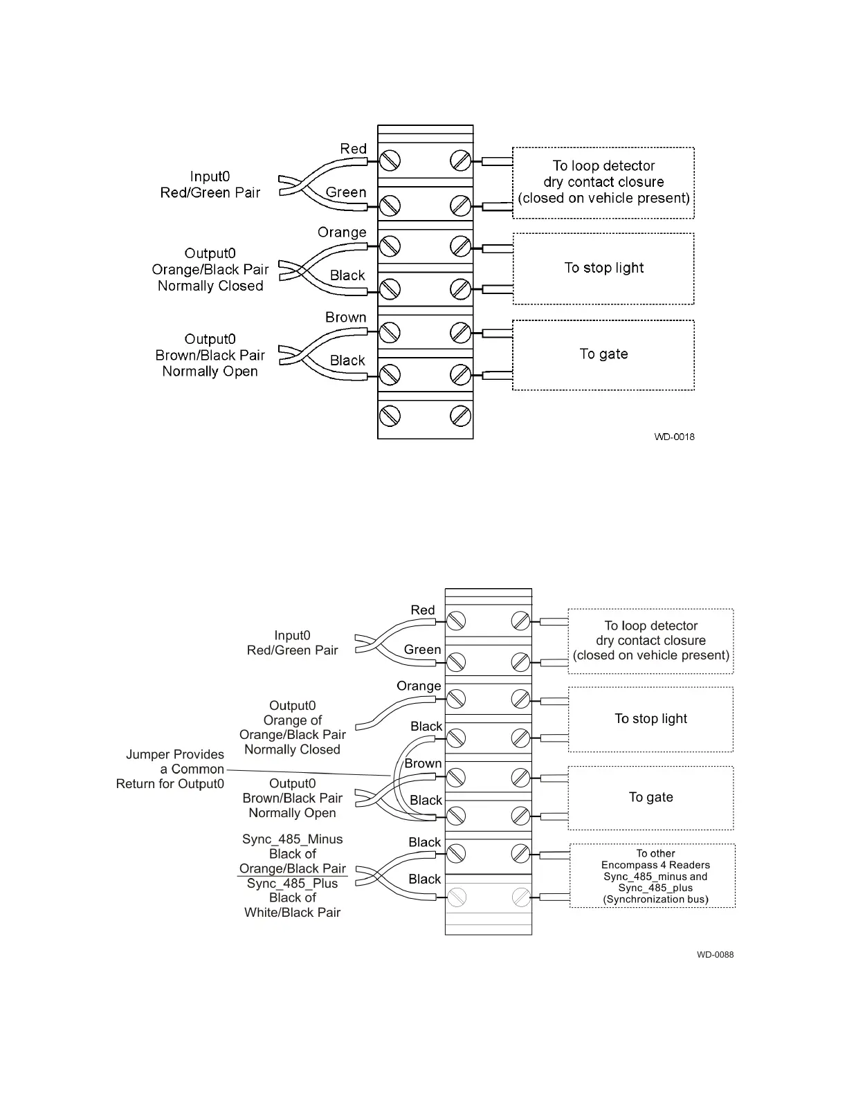 For Encompass 4 Readers that are used with IAG protocols, the NC sense output0 common is connected