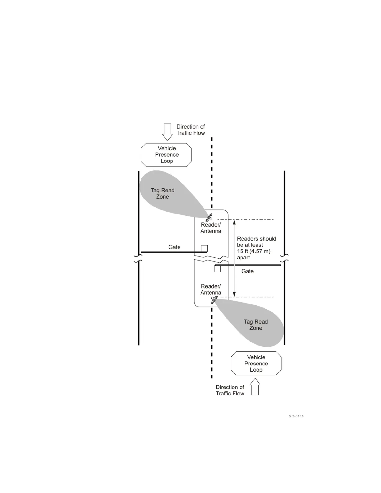 driver’s side (United States). The readers are placed to allow time for the gate to open