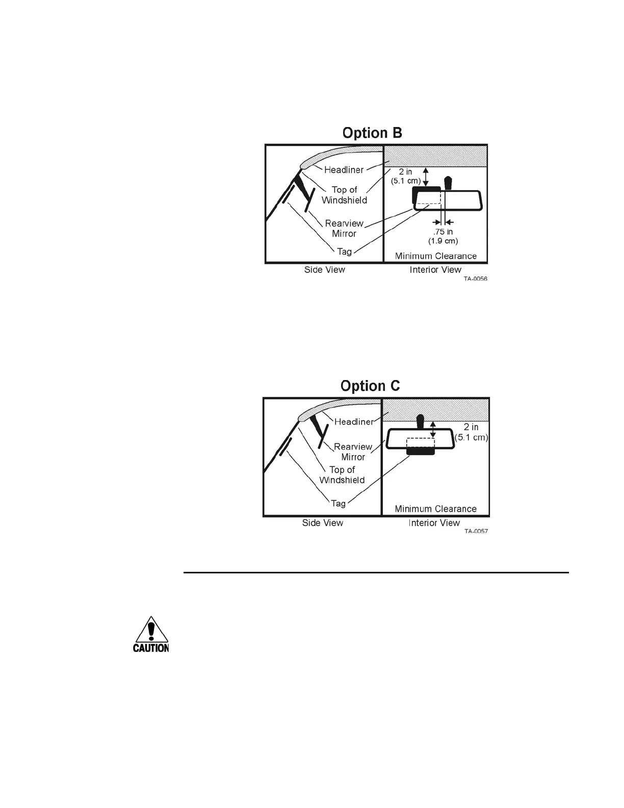 Choose placement Option C if the mirror post is attached to the headliner as shown in