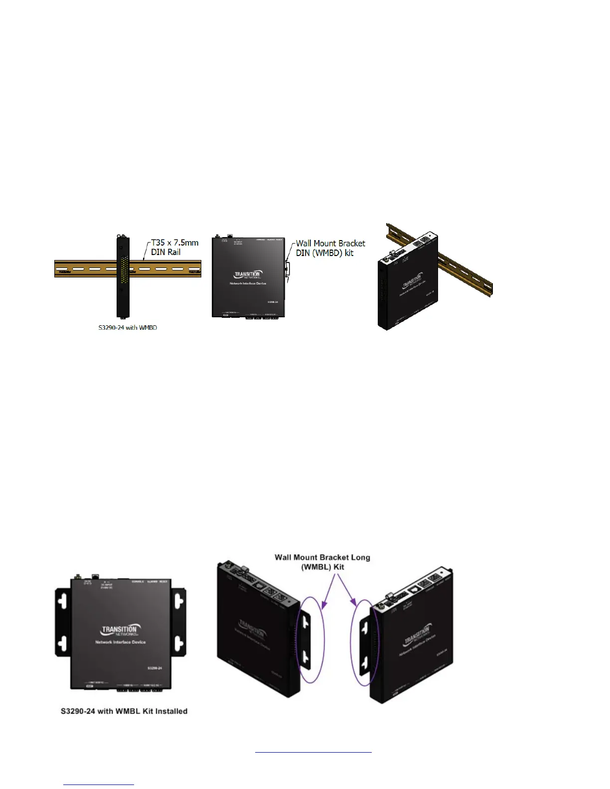 To install the S3290 in a standard DIN Rail, follow the instructions provided with the Wall Mount Bracket