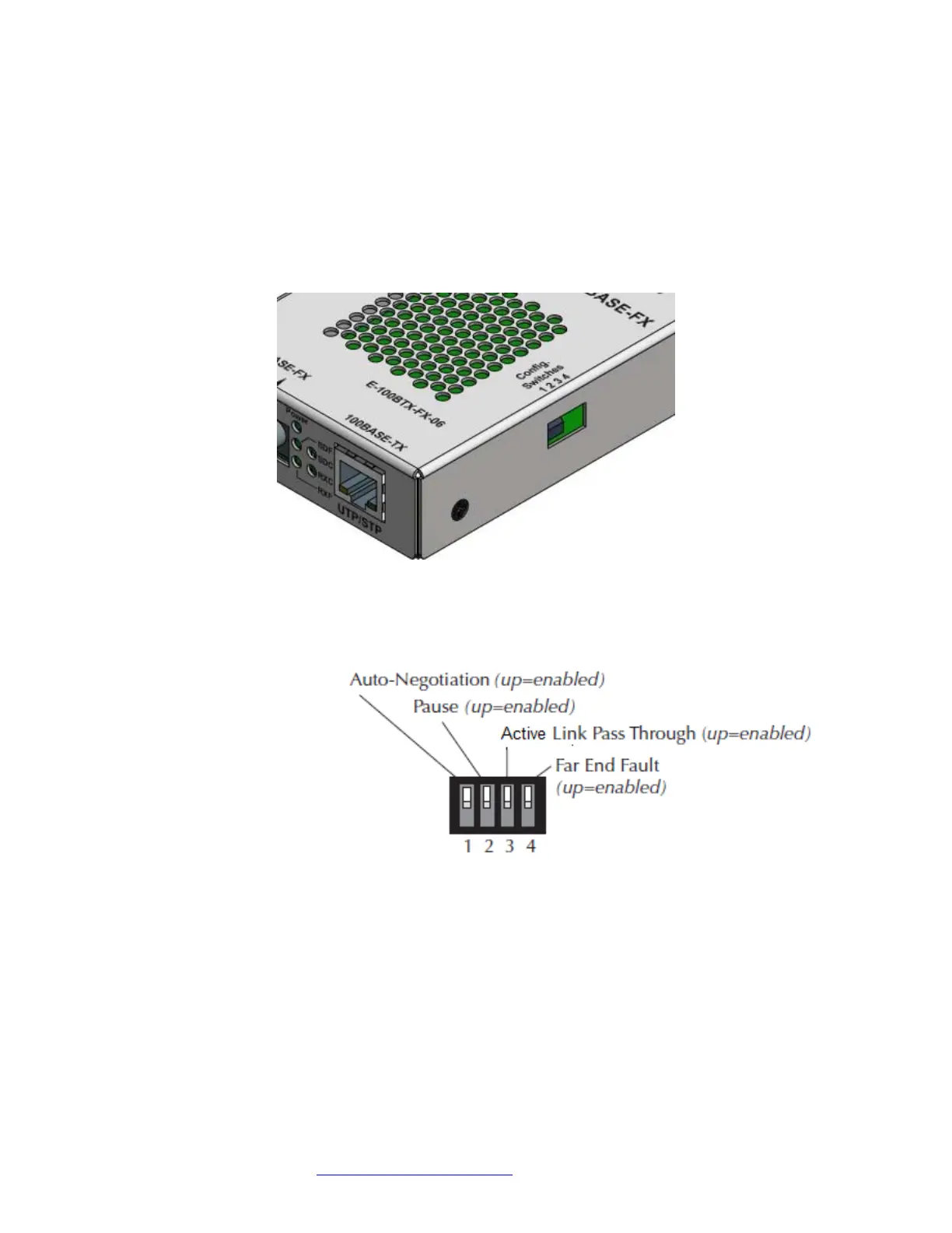 The4‐positionDIPswitchislocatedonthesideofthemediaconverter.Useasmallflat‐bladescrewdriverora