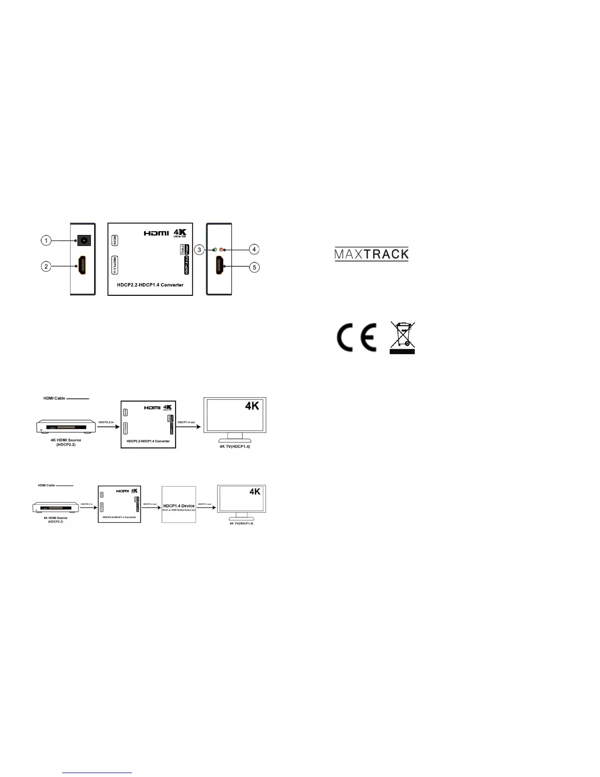 1) Connect 4K HDMI source with HDCP converter.