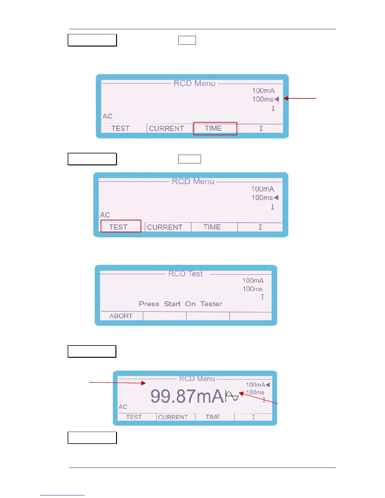 Step 7 Press the test button on the RCD tester to allow the 3200B to