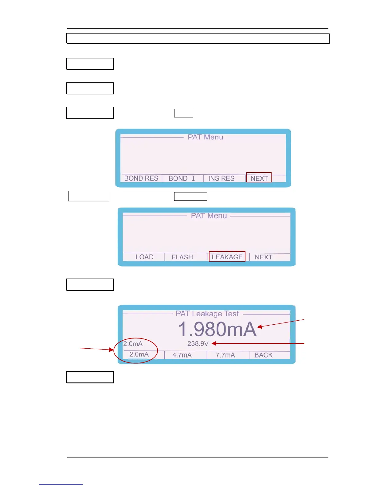 Step 6 Set the PAT under test to leakage mode and instigate the leakage test.