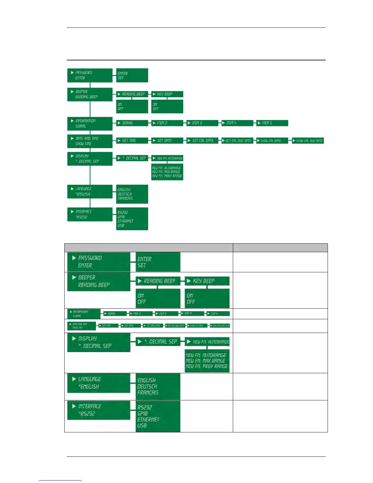 calibration menus or