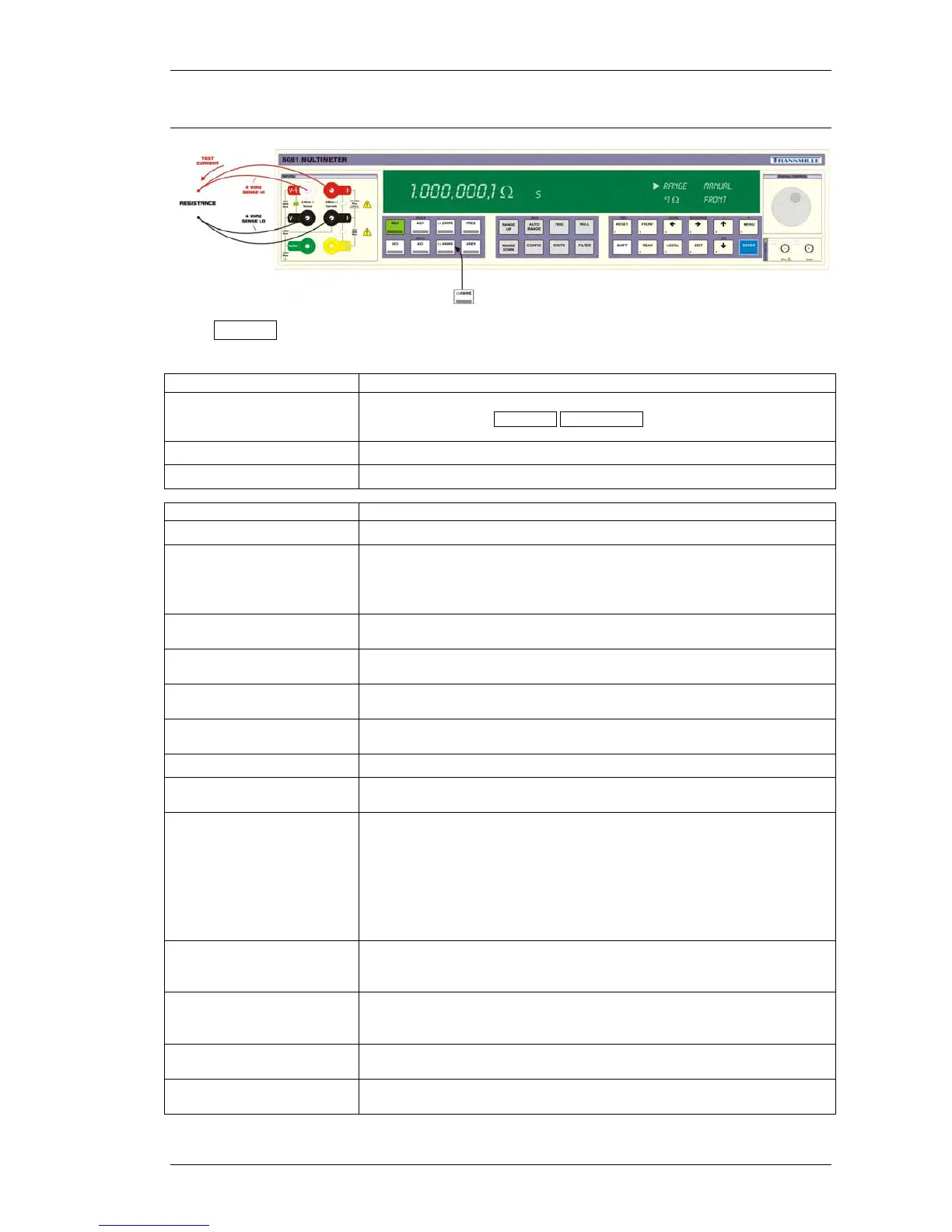 Press Ω 4WIRE to enter the Ω 4WIRE measurement mode – the status display will indicate the