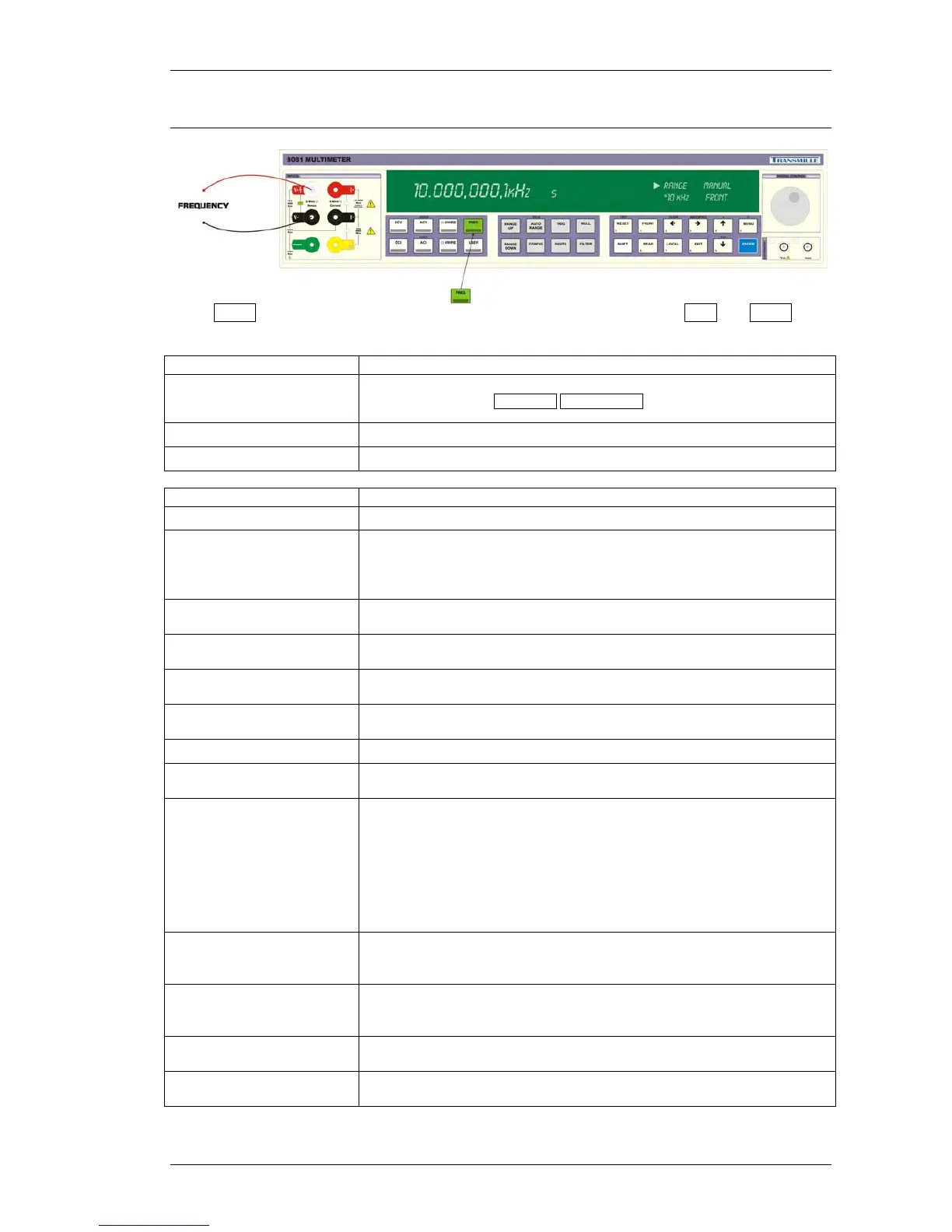 Press FREQ to enter the FREQUENCY measurement mode (1Hz resolution) : ACV and FREQ will