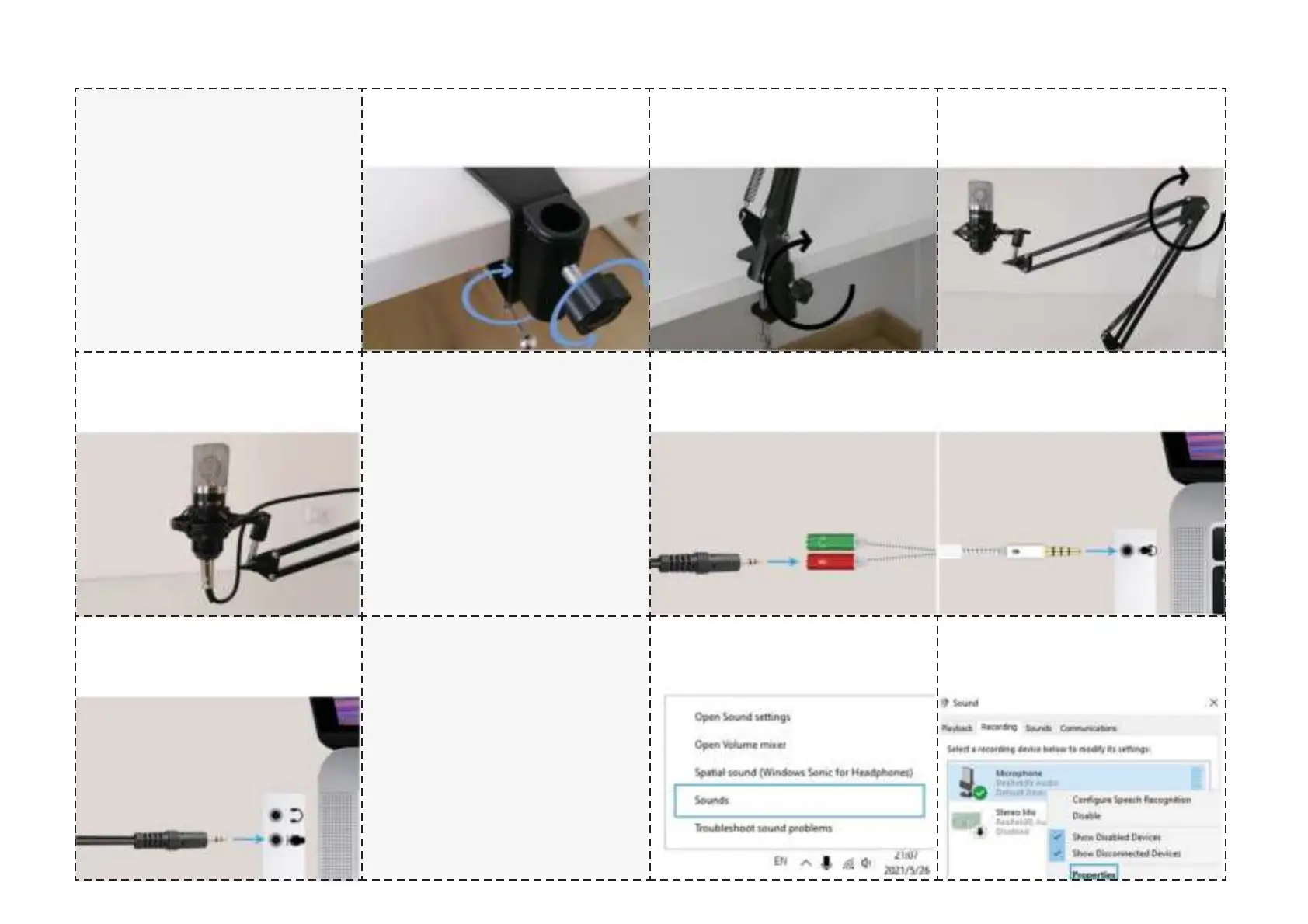 1-3. Plaats de microfoon. En draai de 1-3. Plaats de microfoon. En draai de