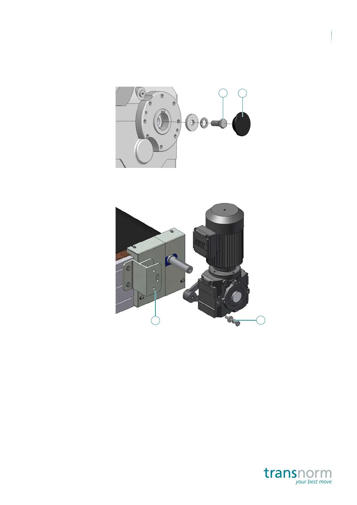 5. Swivel the gear motor out of the torque arm (4) and then pull it off the