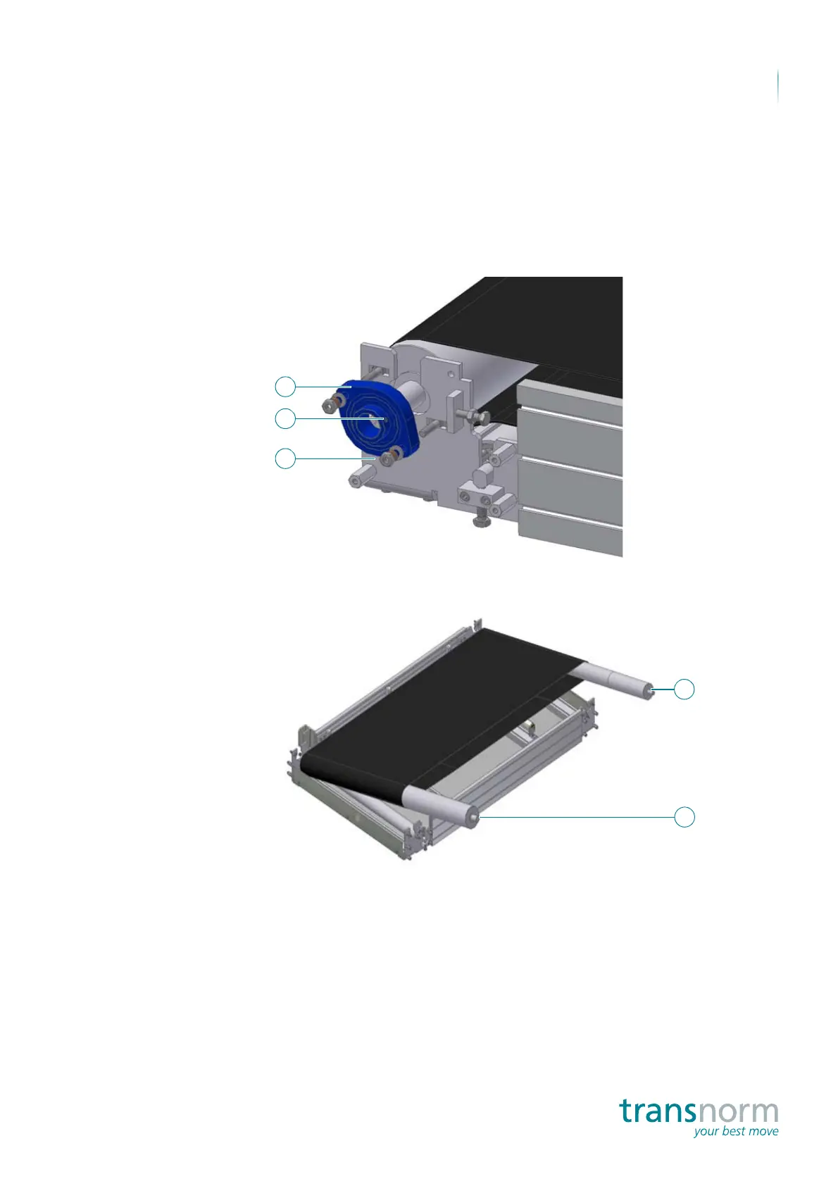 3. Pull the flange bearings (3) off the drive- or deflection drum.