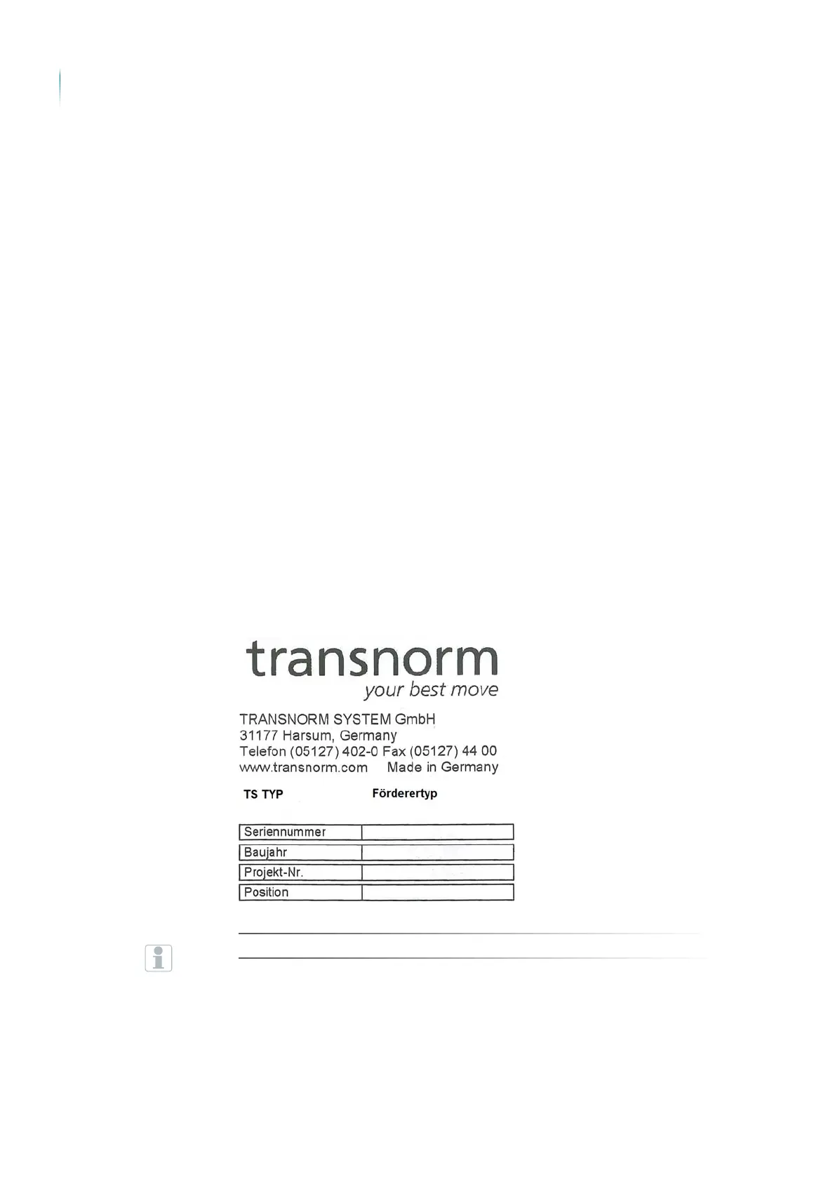 TRANSNORM SYSTEM GmbH type identification plate, sample