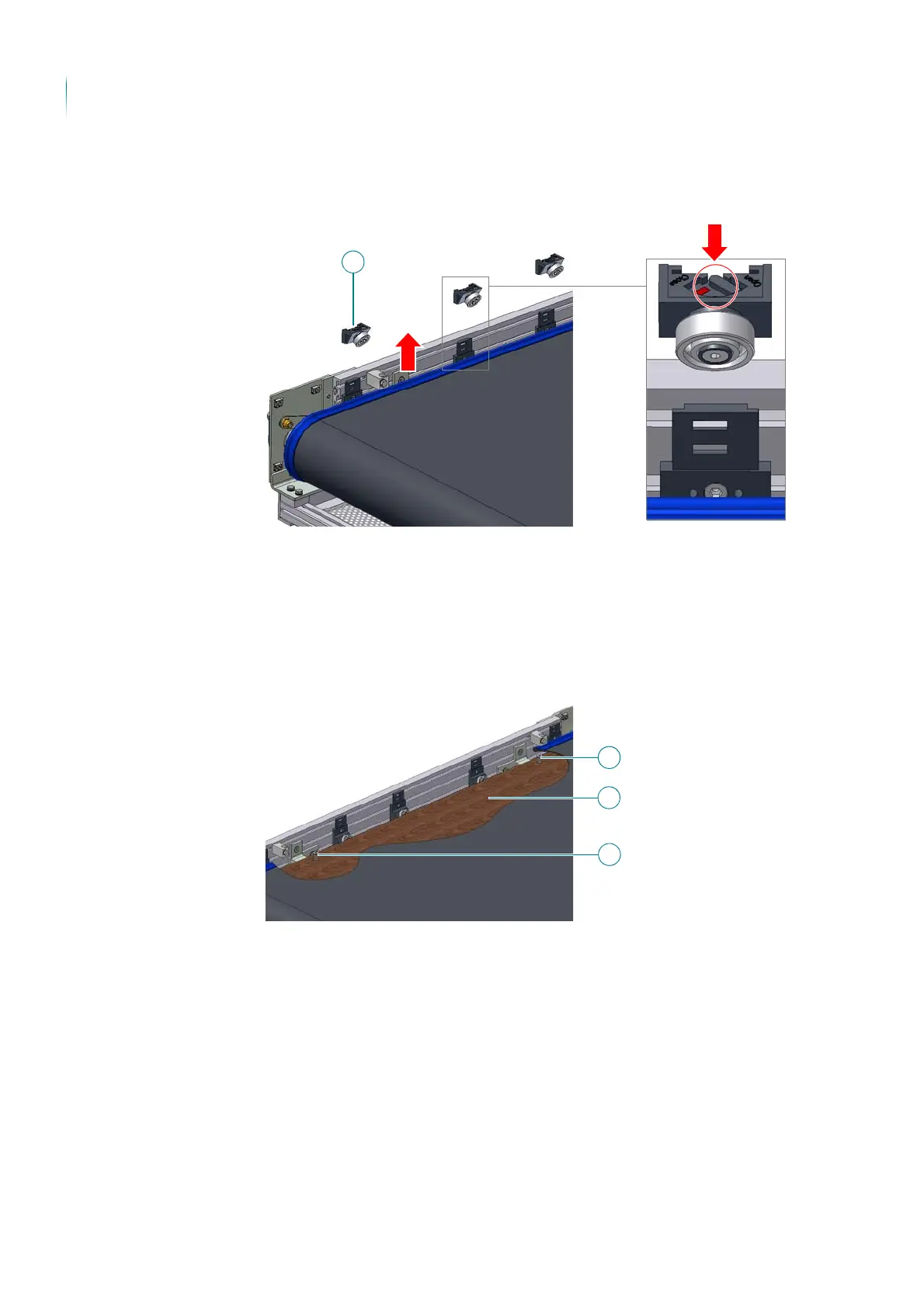 The upper belt edge holder parts have been disassembled - upper run.