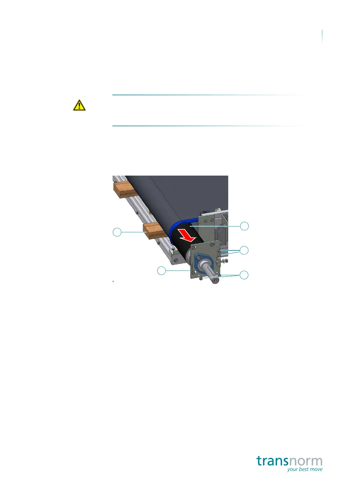 Secure the drive pulley and tail pulley to prevent them from falling.