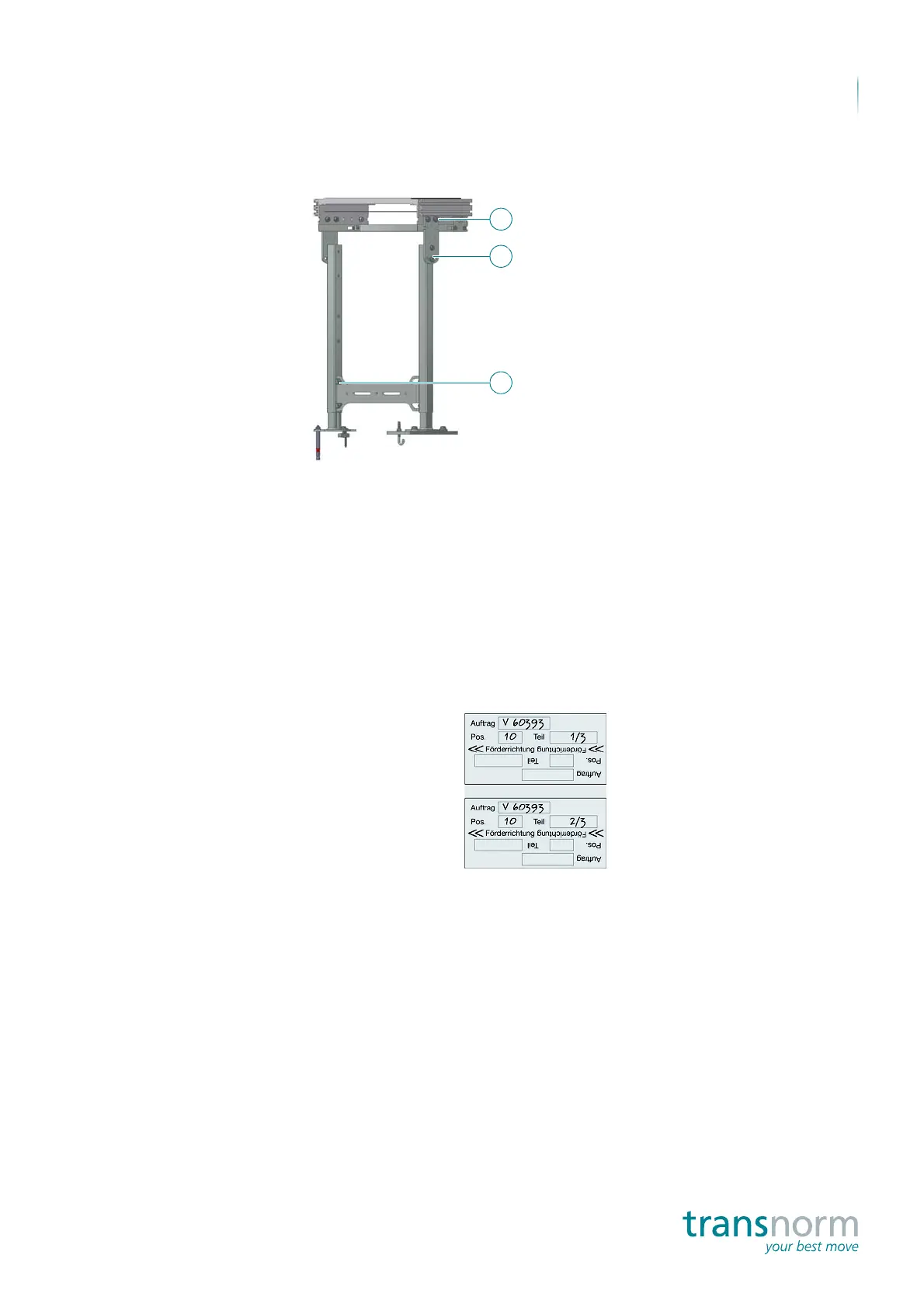 1. Pre-position the individual sections on the conveyor bed as shown by the
