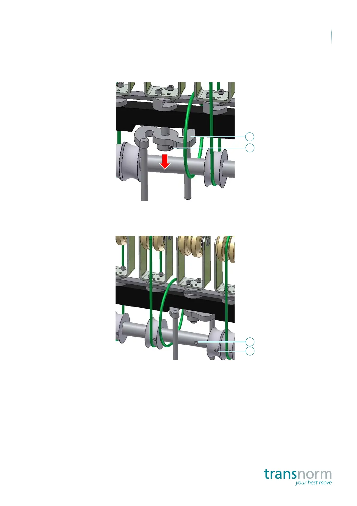 6. Check that the grub screw (6) of the belt pulley is seated in the centre