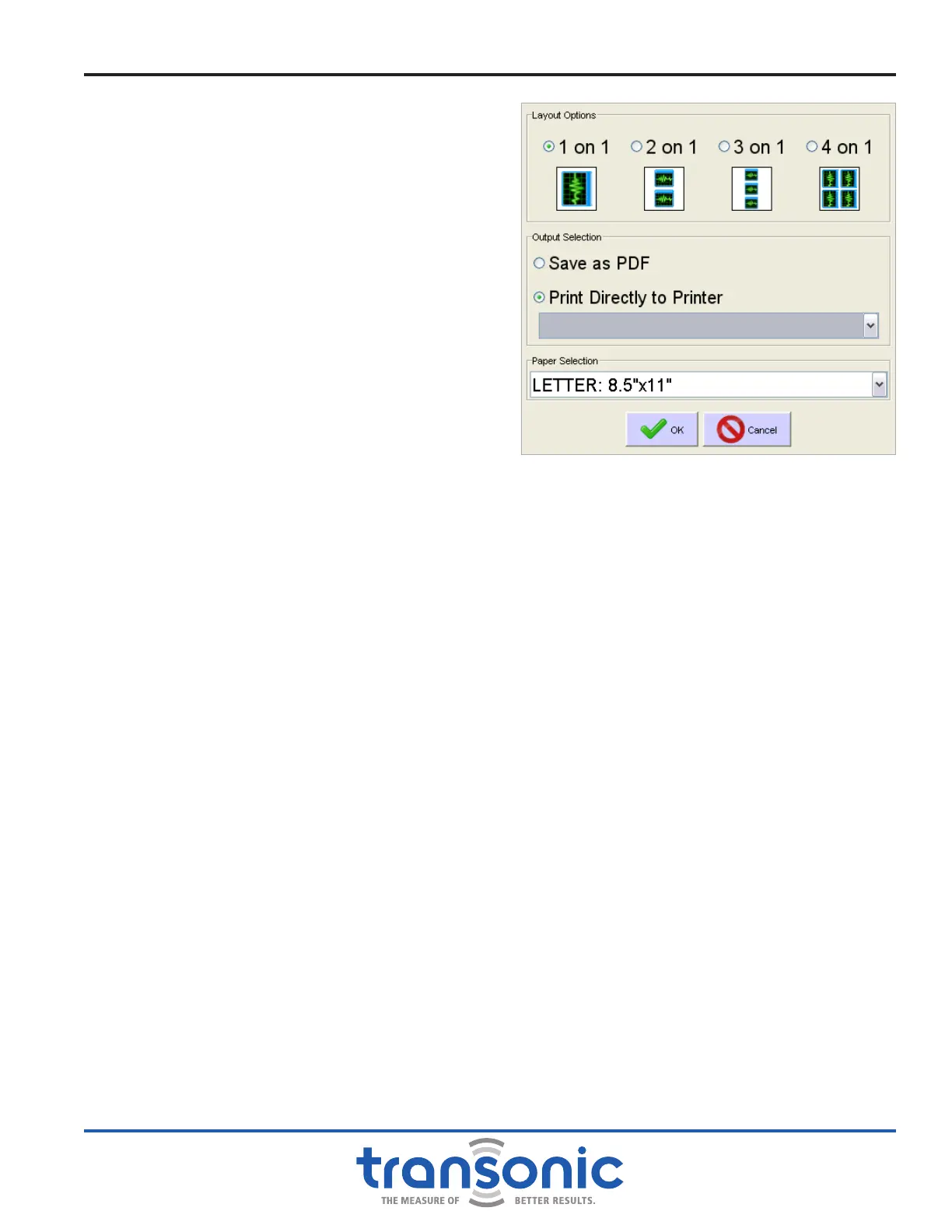 Fig. 4.3: Print options dialog box. Printer drop-down menu is