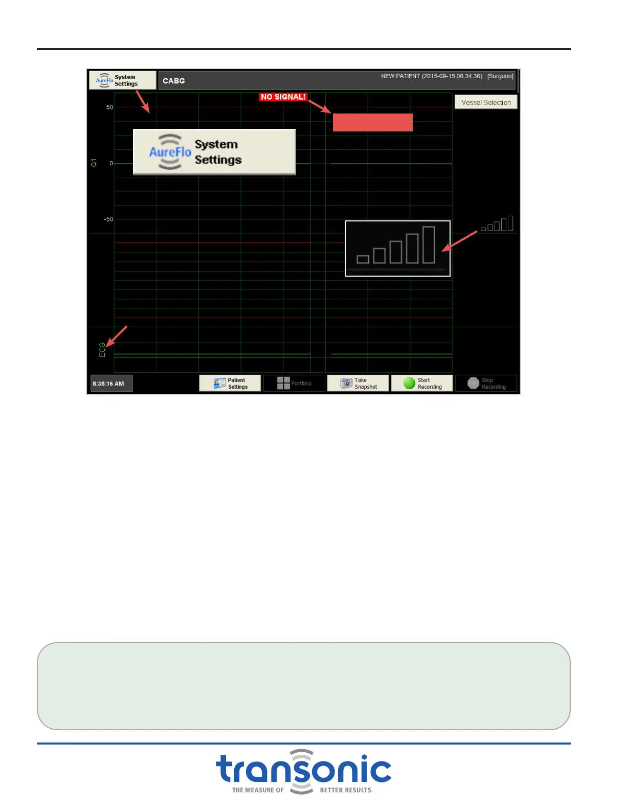 3) Observe the Signal Indicator Display on Realtime mode (Fig. 4.4). The bars will change from black to red