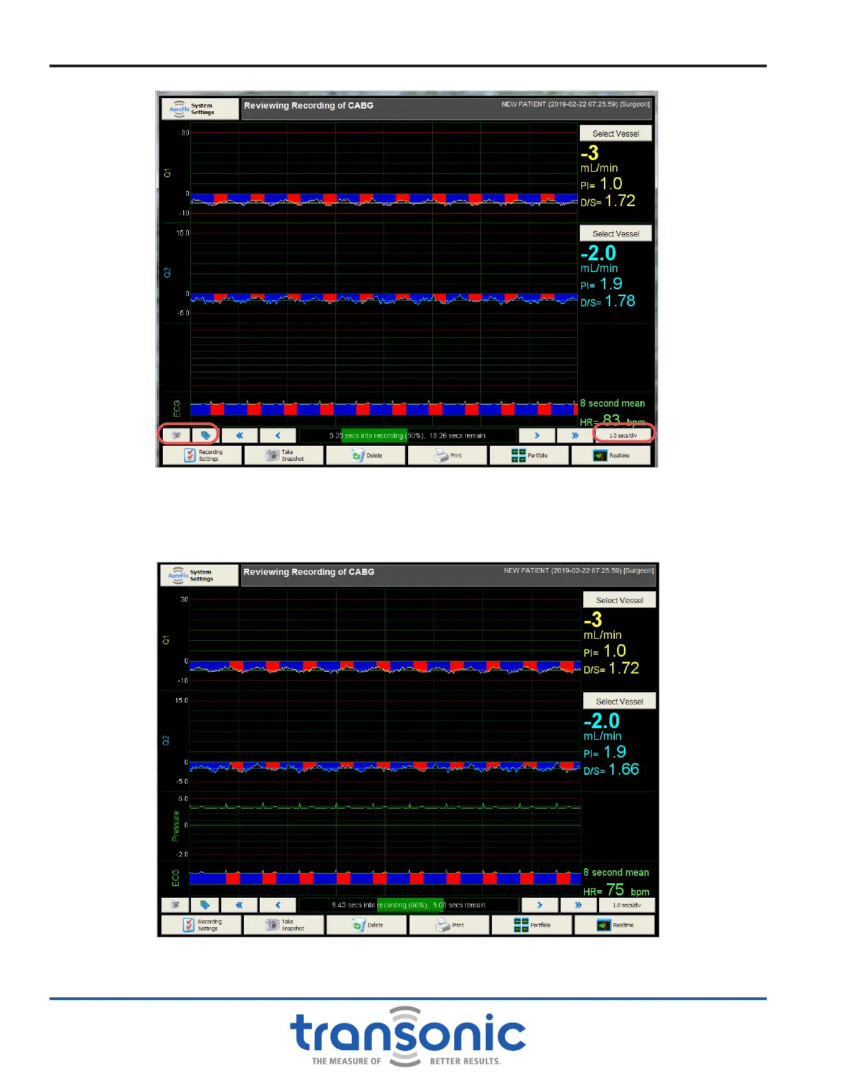 the left and right arrows to create Snapshots and change tagged vessels. The Mean Flow and PI will