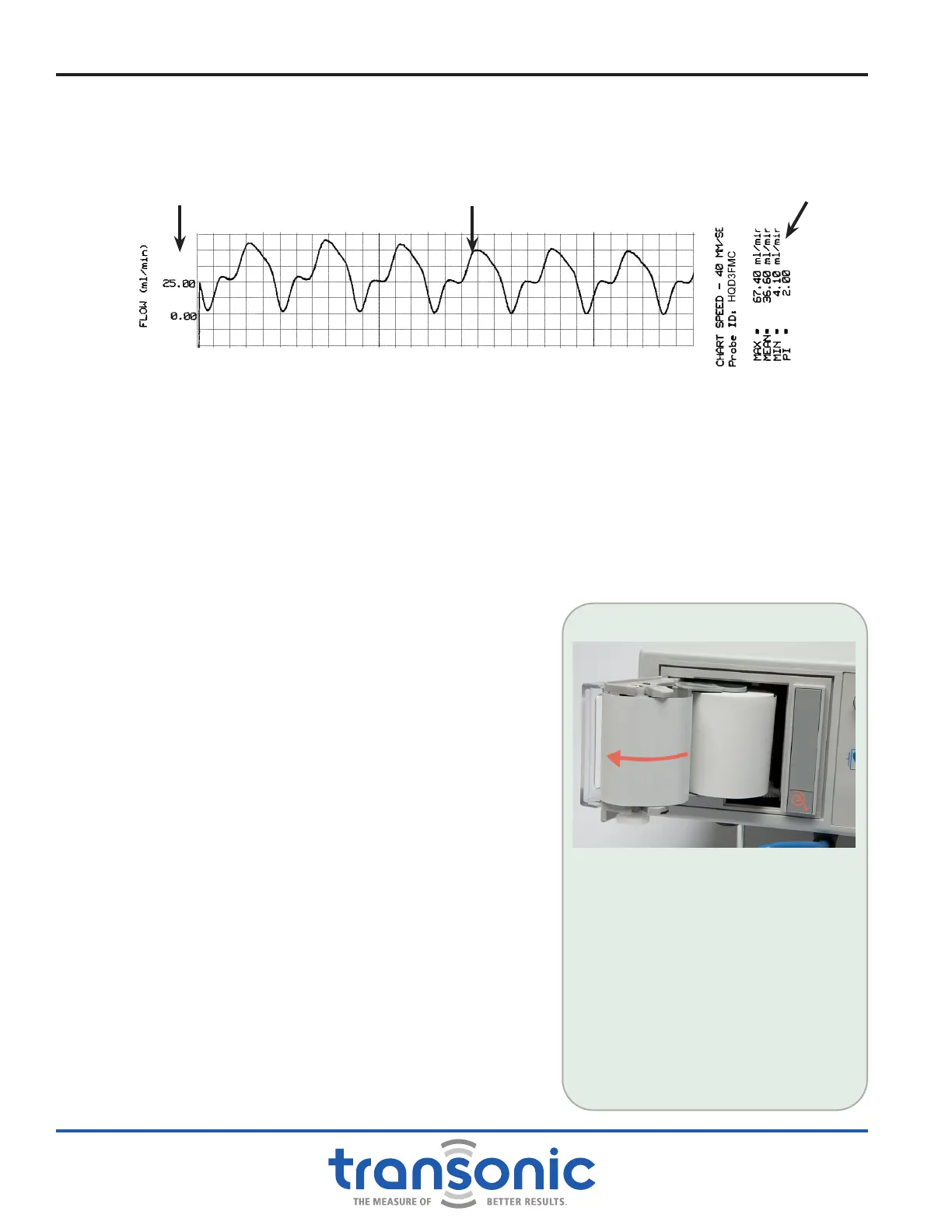 The chart recorder will then print a strip of ow data in real time. There is another brief pause toward