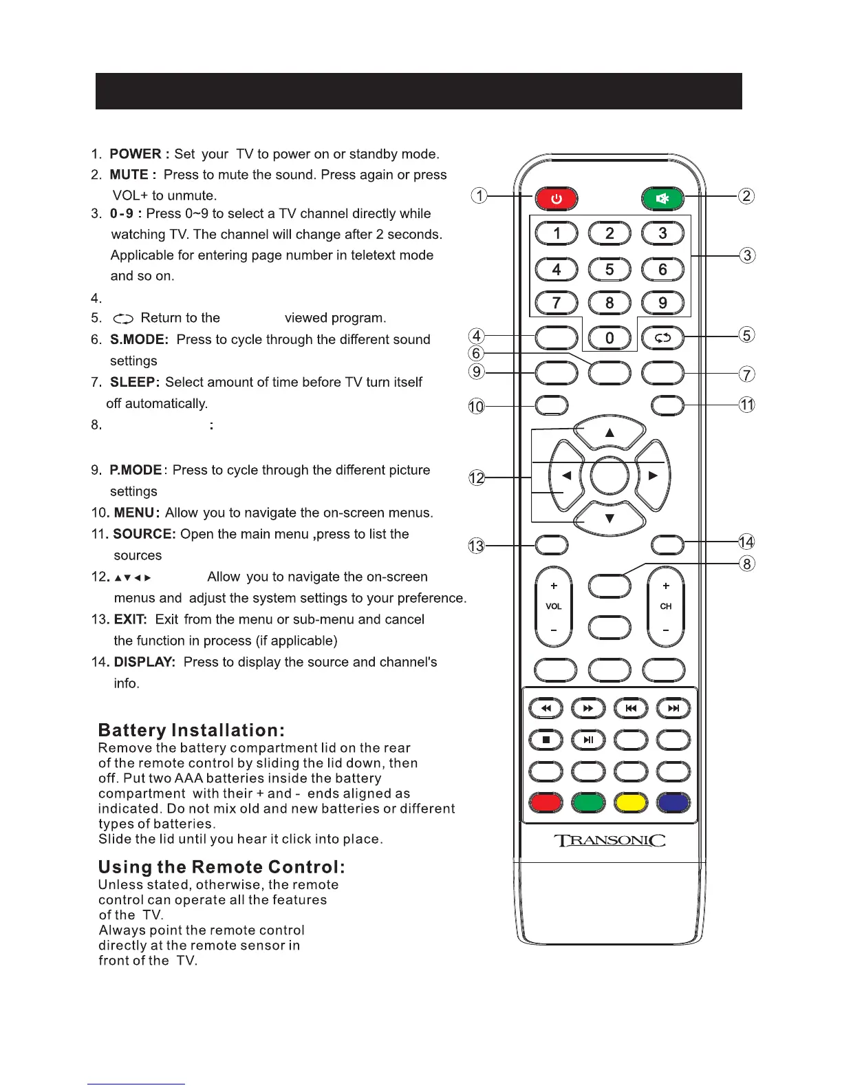 Transonic TC1558LCD - Remote Controller; Using the Remote Control