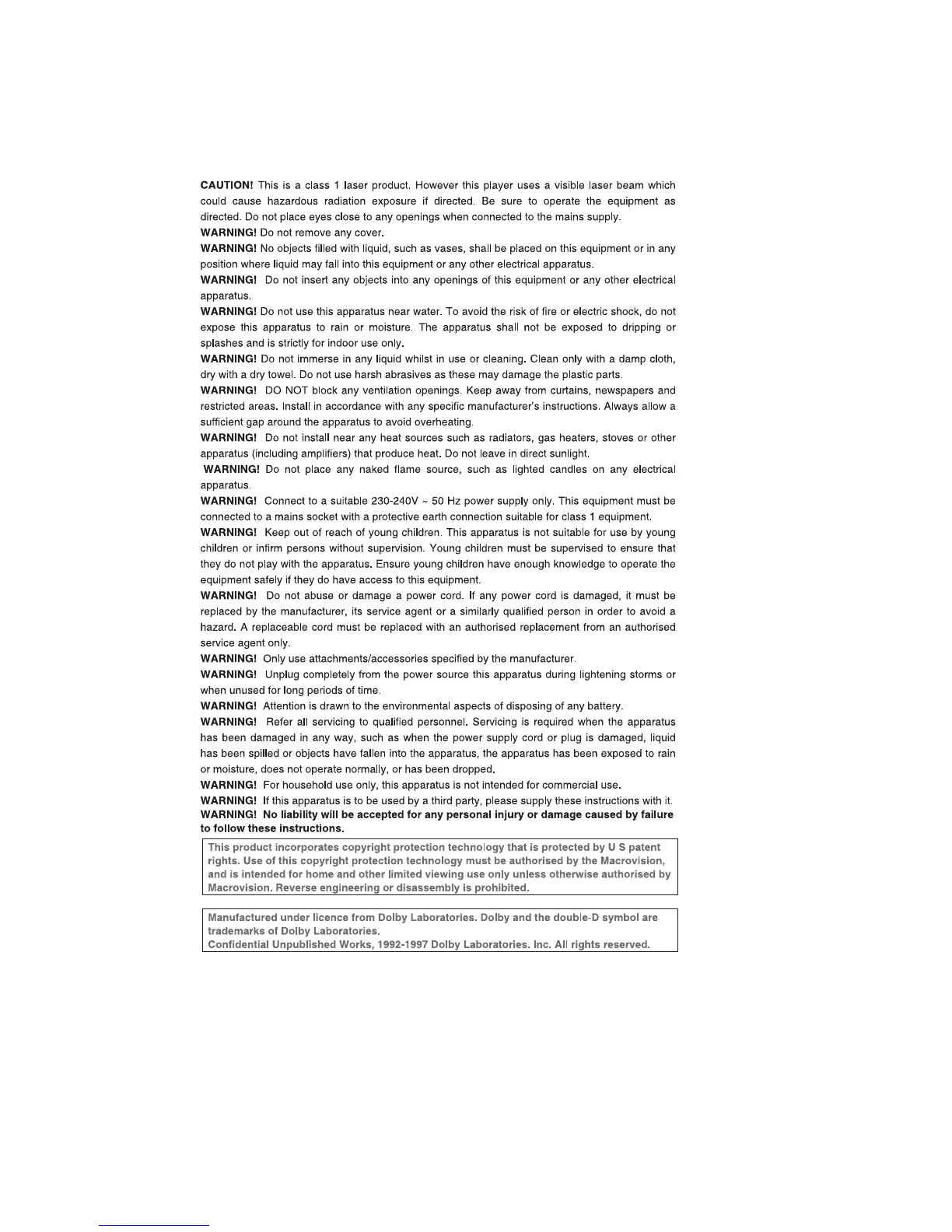 Transonic TC2380LCD - Caution and Warnings; Laser Product Safety; Appliance Safety Precautions; Usage and Handling Warnings