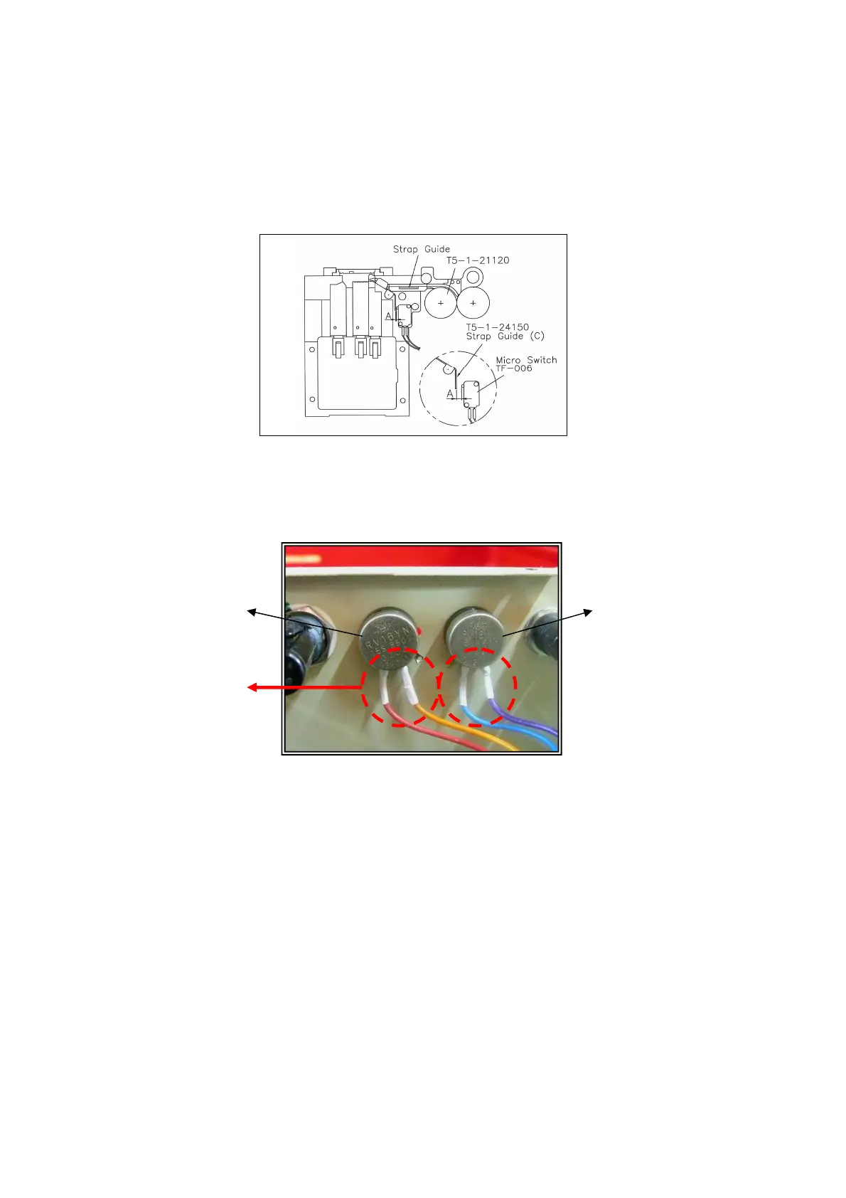 2. Straps are stuck around Strap guide assy’ ( T5-1-24001/24002/24005/24007 )or around