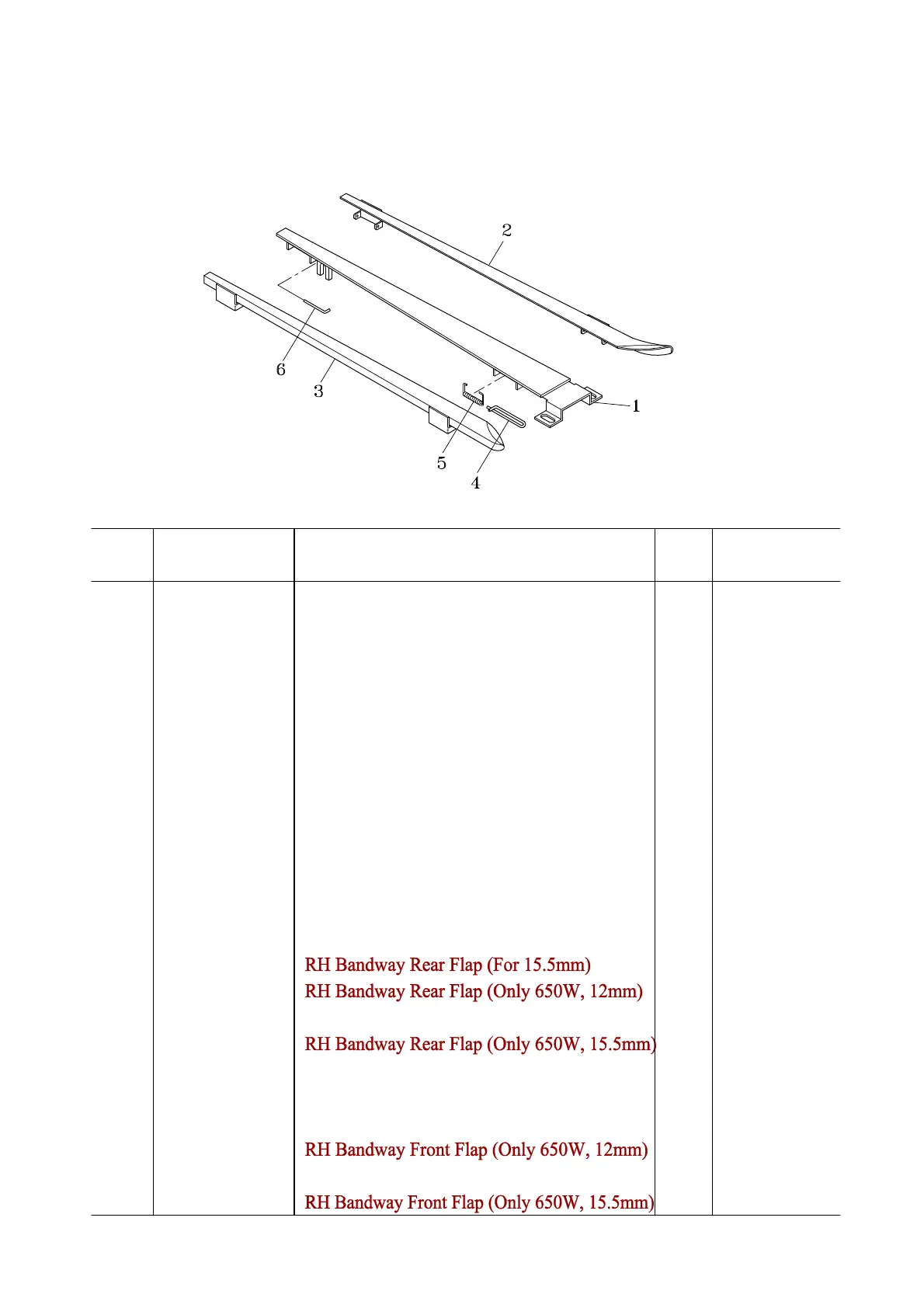 T6-2-11012 RH Bandway Ass'y (Only 650W, 15.5mm) 1