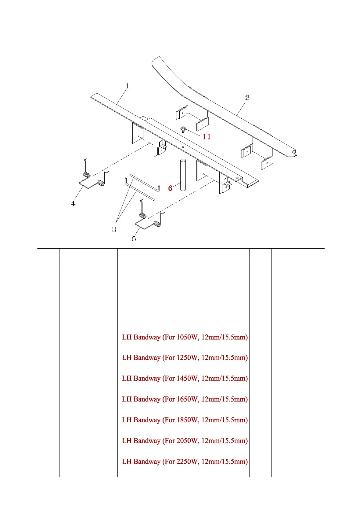 T6-2-12202 LH Bandway (For 1050W, 9mm) 1