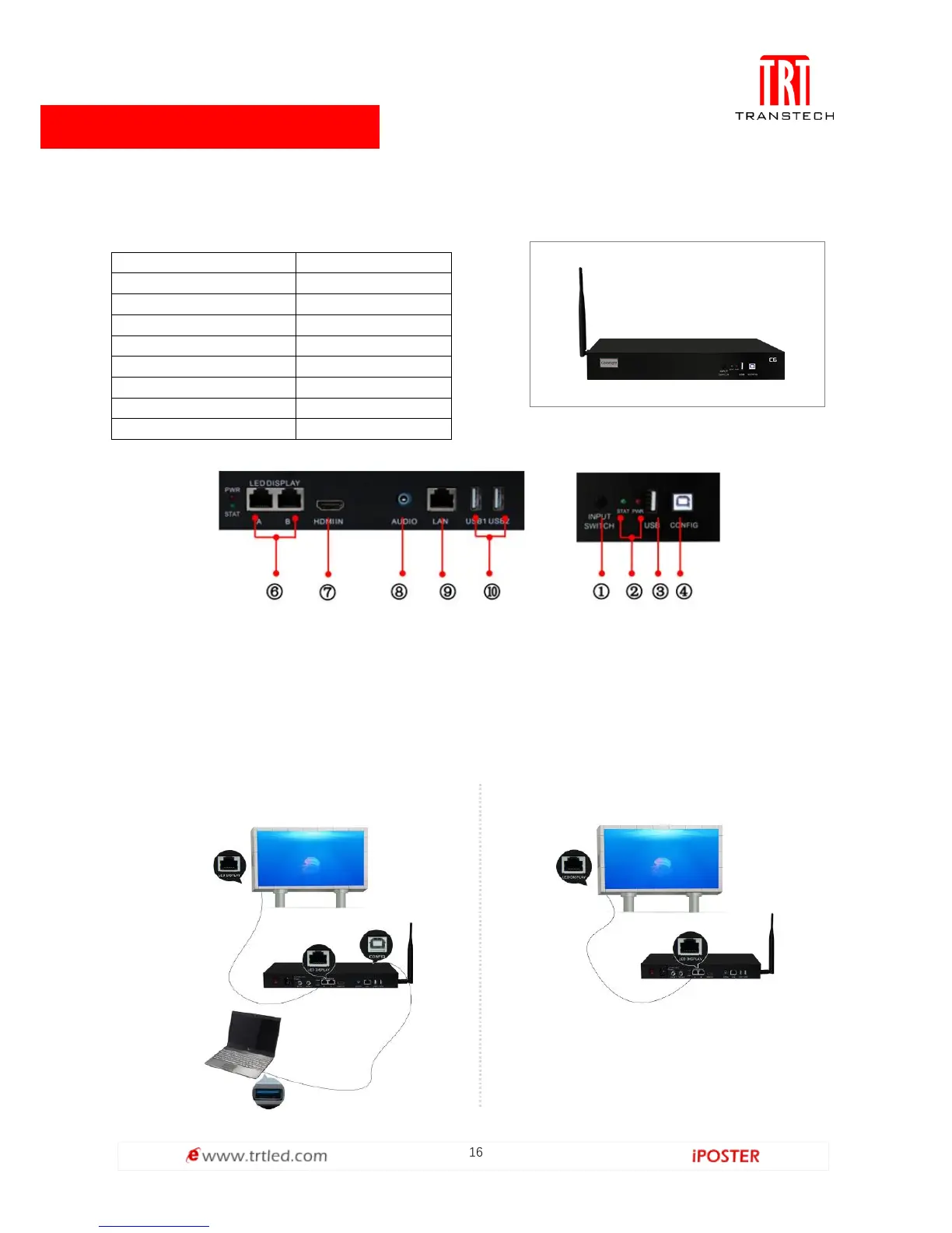 Transtech iPOSTER P1.9 - Control System Overview; Main Controller Specifications