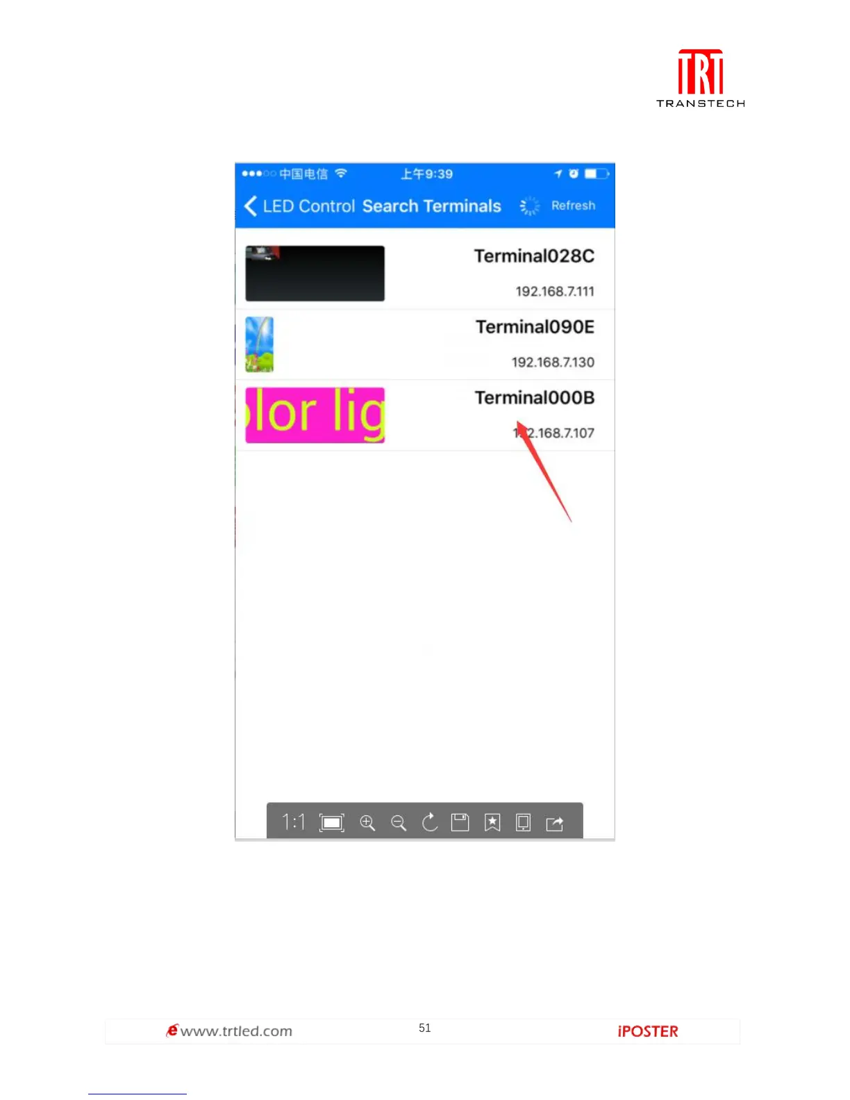 Transtech iPOSTER P1.9 - Selecting Target LED Player; Finding and Connecting to Players