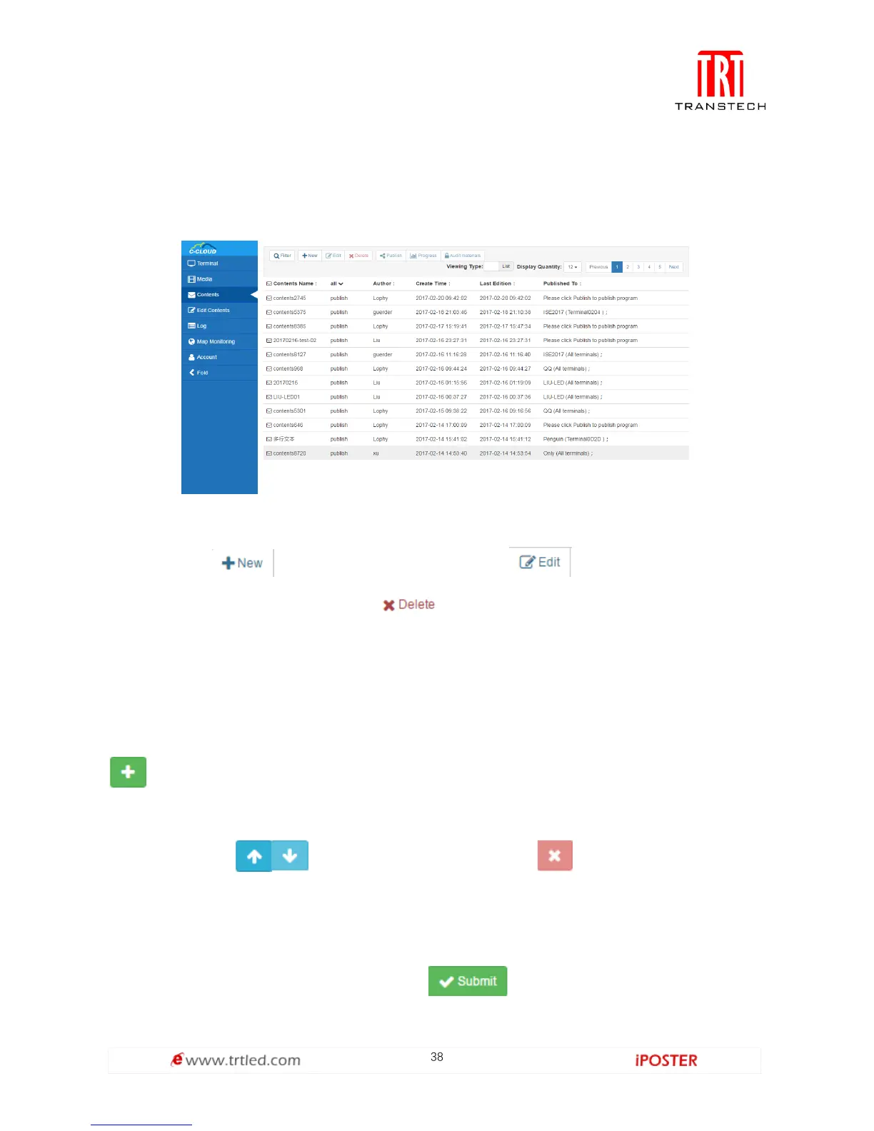 maximum), click to adjust the play order, click to delete program page,