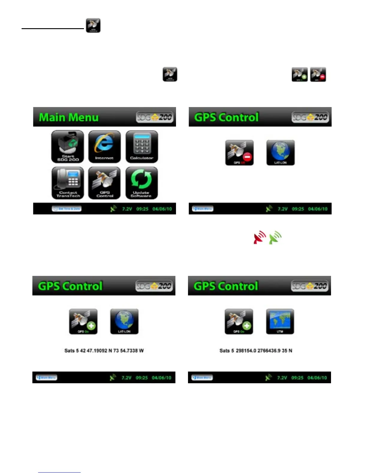From the Main Menu, Press GPS CONTROL. GPS status can be toggled ON or OFF.