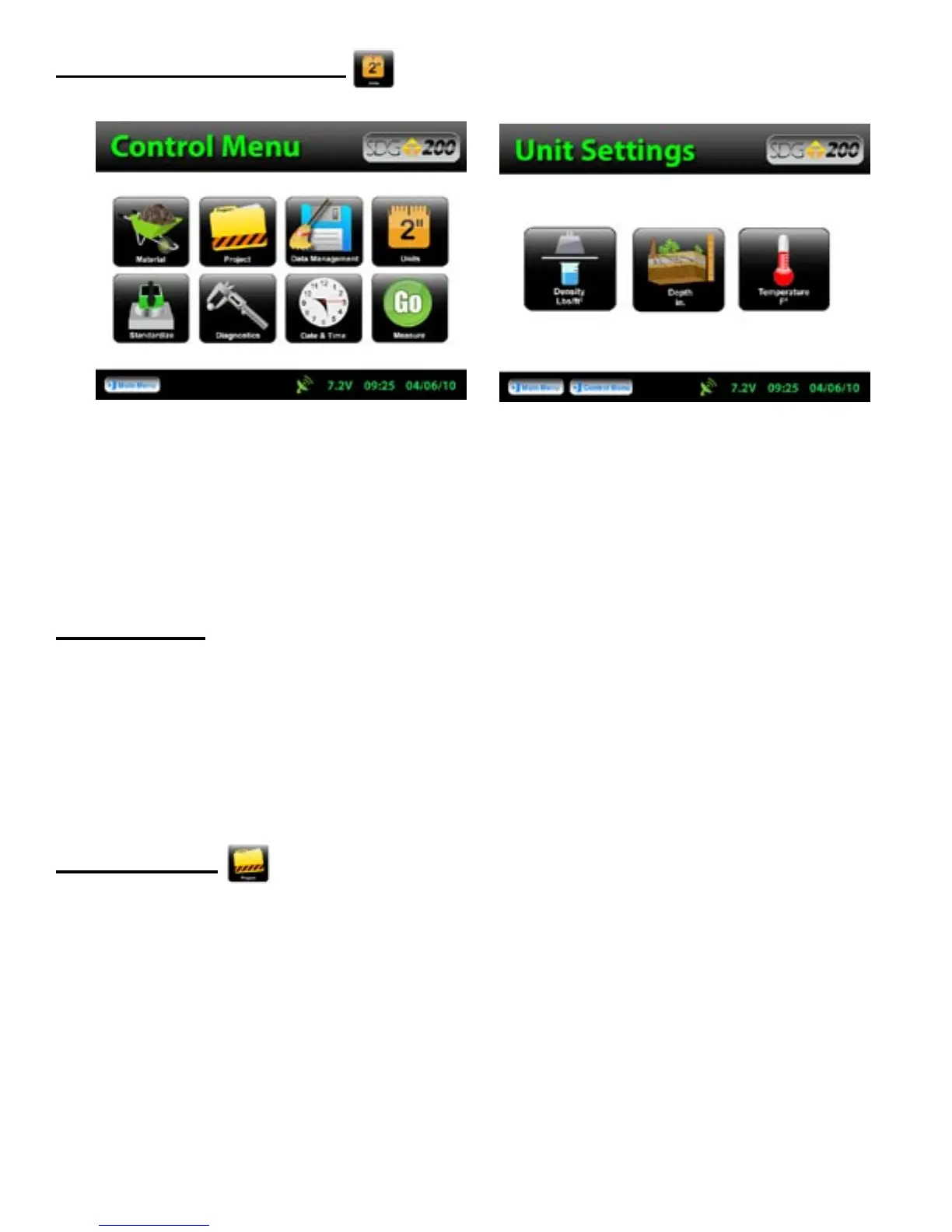 The SDG 200 saves data automatically under the Project name that is current while readings are being taken.