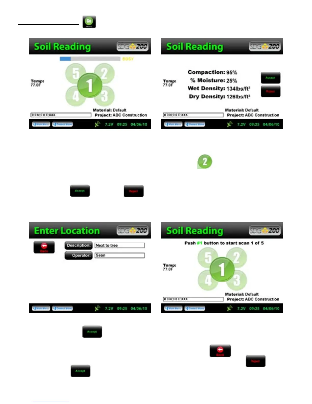 of the Soil Reading screen to continue taking measurements. If you chose to press “Reject”