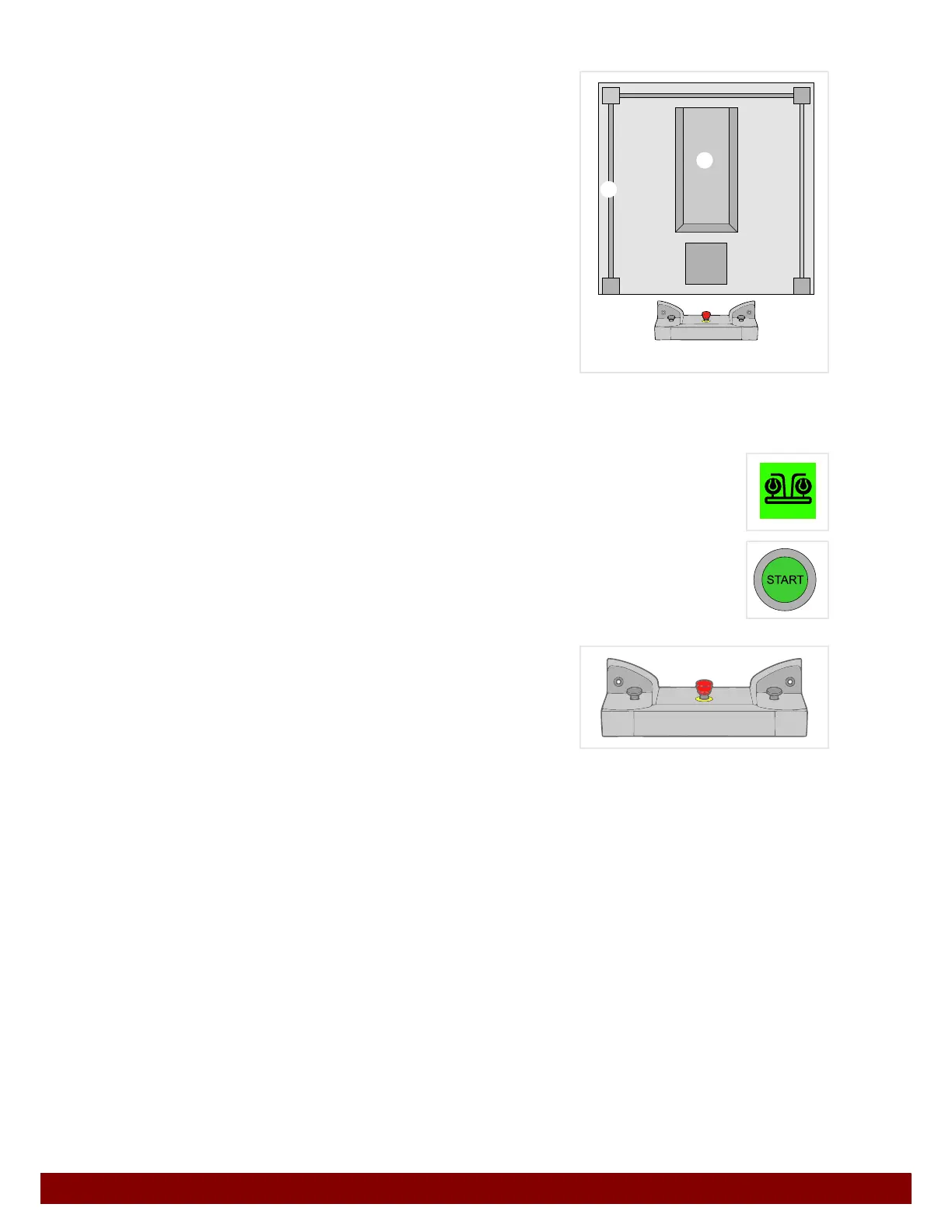 The START illuminated button lights up when the machine is ready to start.