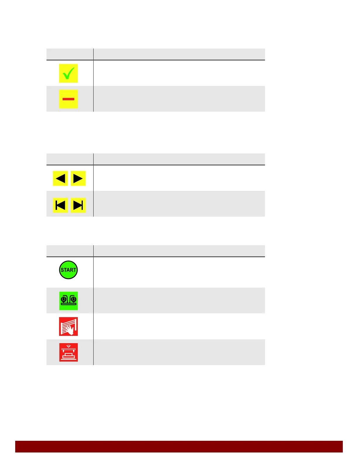 The selected function is carried out when the START illuminated button is pressed.