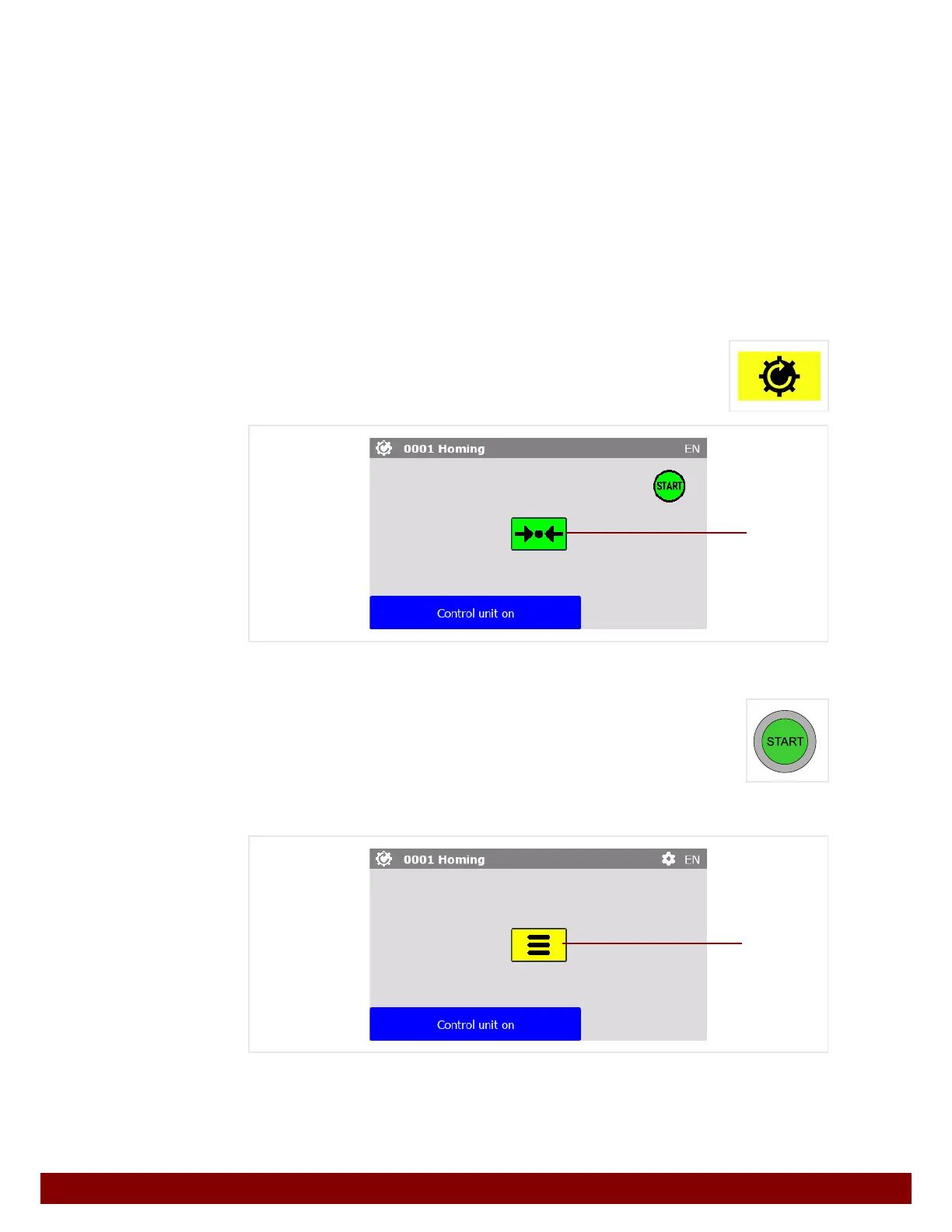 the home position. Otherwise these functions cannot be carried out. A notification displays