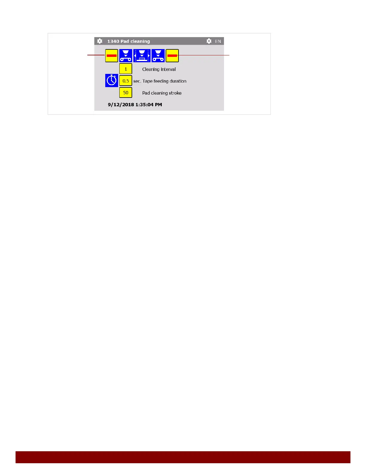 After the pad cleaning, the feed for the cleaning tape is switched on for the set time period.
