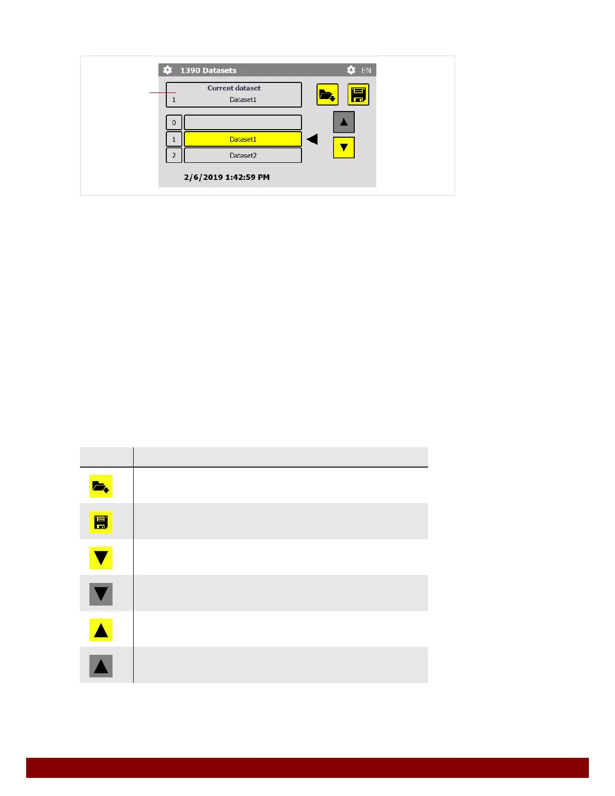 Datasets which have already been saved can be loaded. Here, all current settings and