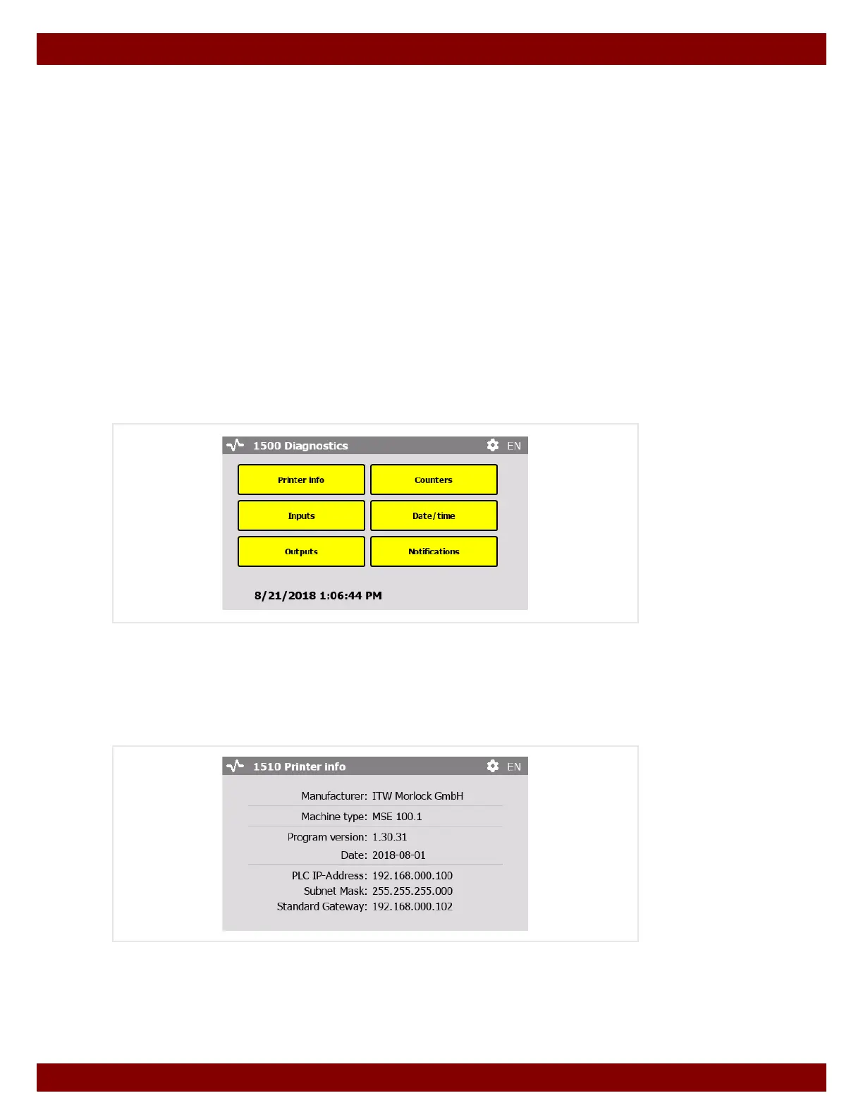 • A diagnostics menu can be called up in order to determine current signal statuses. In