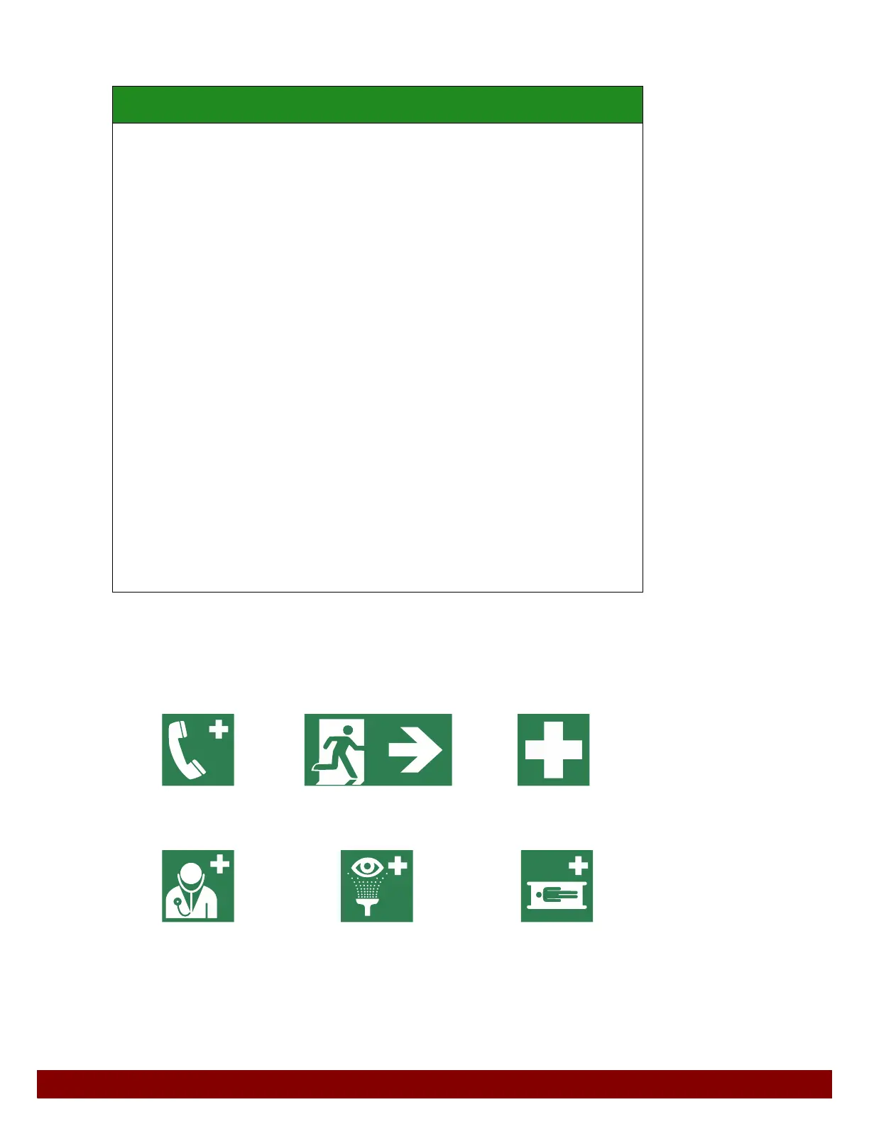 Emergency telephone Escape route First aid